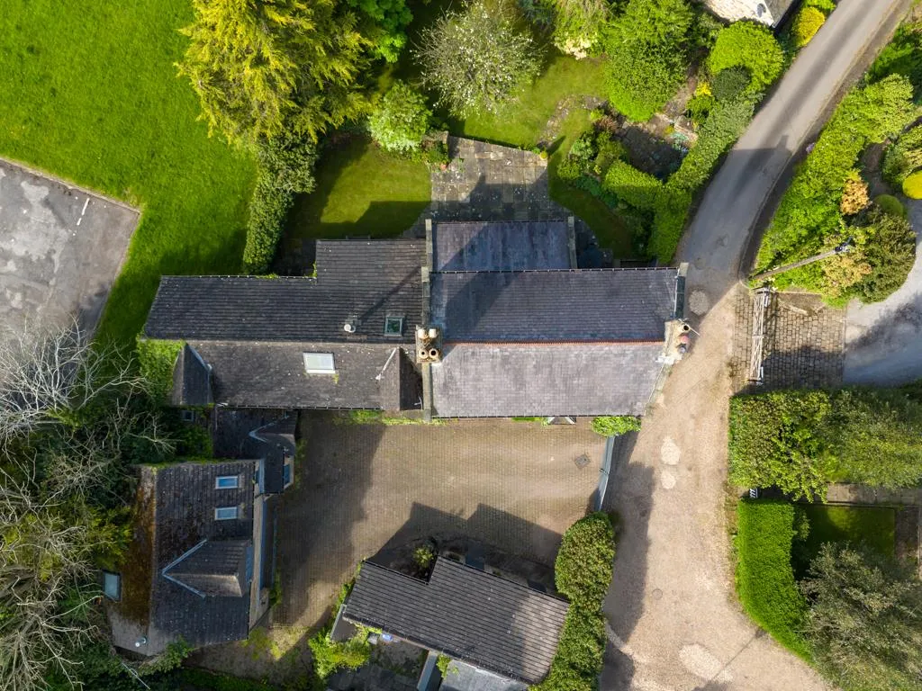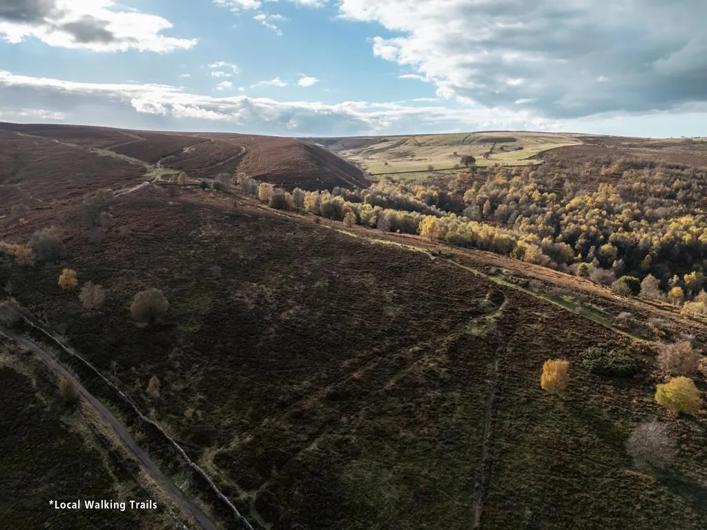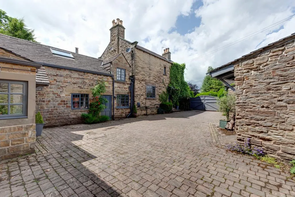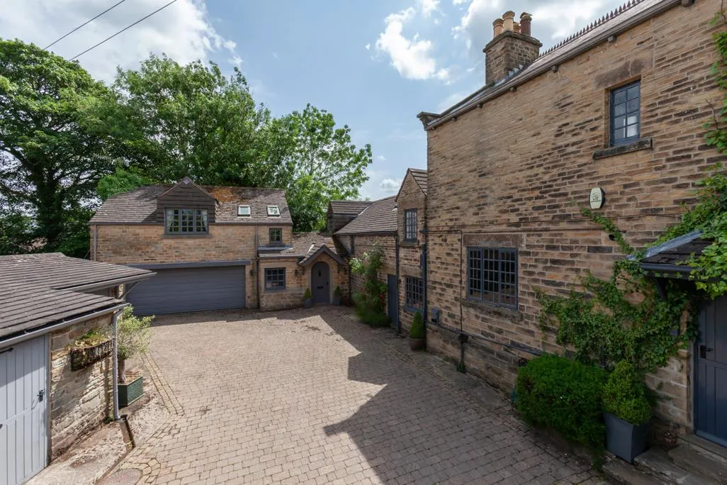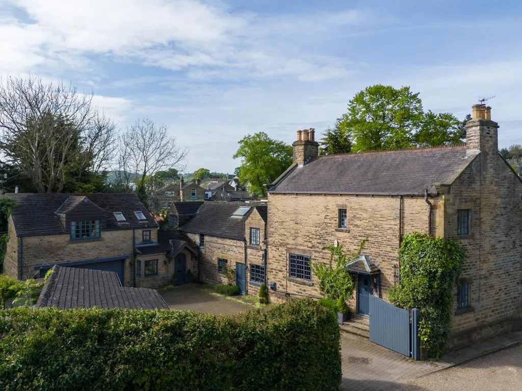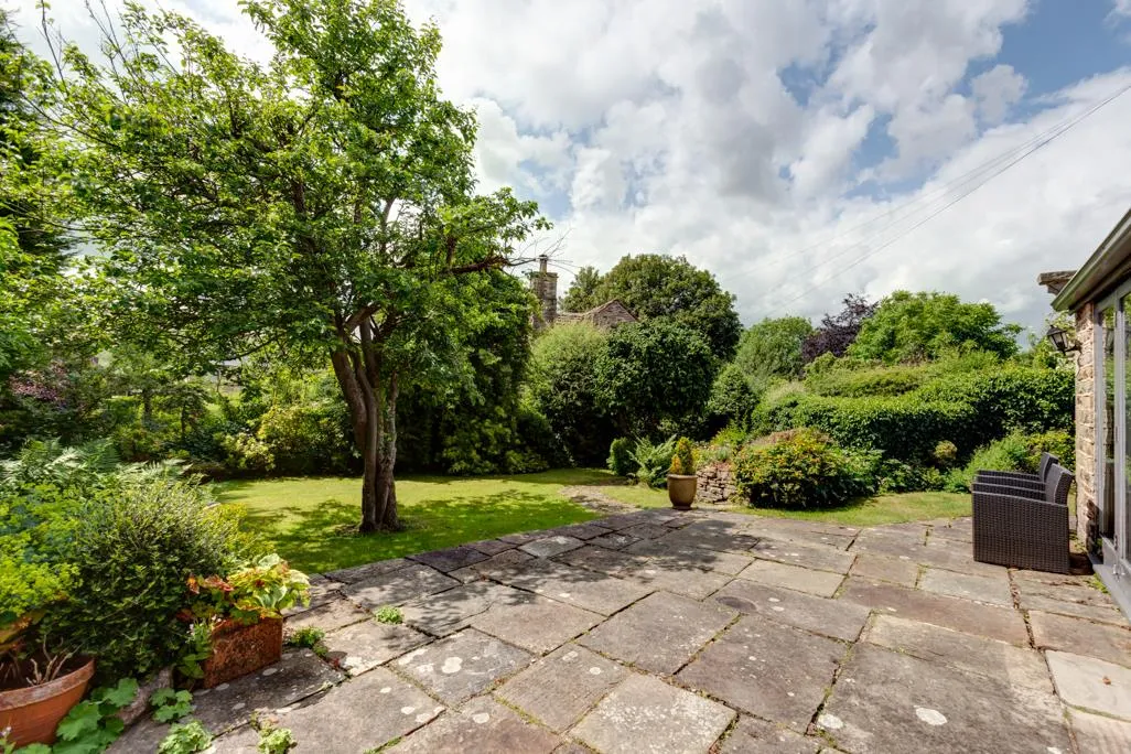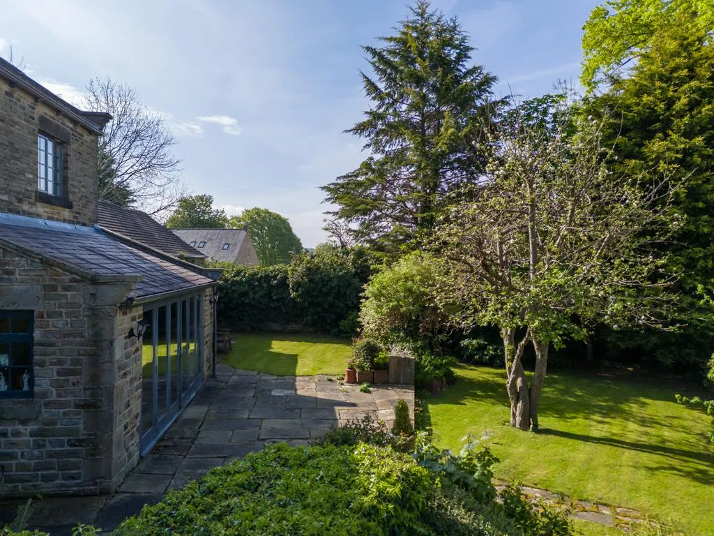 To the rear of the property, there’s a garden that is laid to lawn with a range of mature trees, including an apple tree, and mature shrubs. Also having a York stone flagged seating terrace with exterior lighting and a water tap and a range of mature trees. Access can be gained to the dining area and a timber pedestrian gate opens to Butts Hill. A stone path leads to a further stone patio with mature trees and shrubs. To one corner of the garden, there is a BBQ area with a stone slab table.