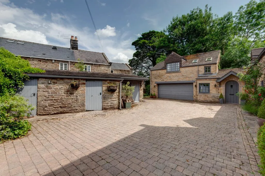 From Butts Hill, timber gates open to the front of the property. A block paved courtyard provides parking for several vehicles with exterior lighting and shrubs. Access can be gained to the main entrance door, breakfast kitchen, outbuildings and double garage.