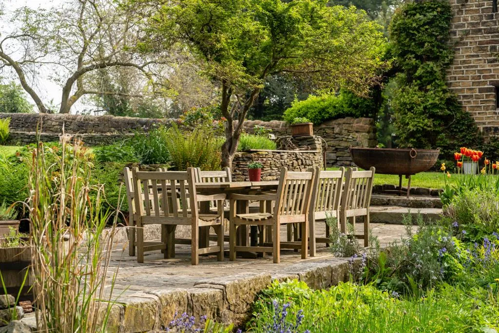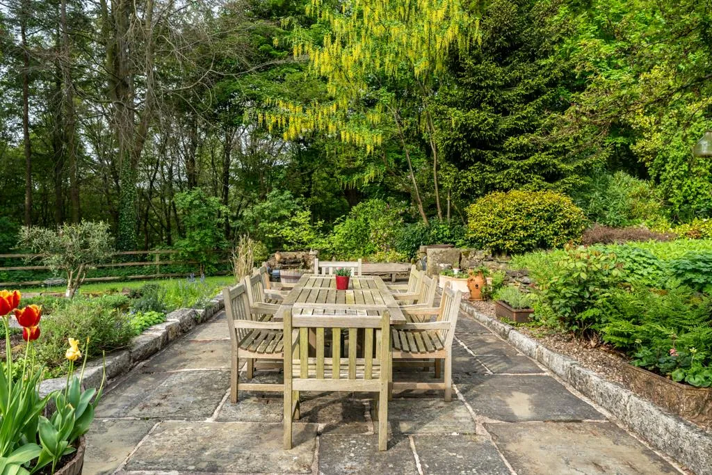To the right side of the property, there is a garden that is mainly laid to lawn with planted borders and ornamental box hedging. Beyond the garden, there is a stone flagged patio that contains mature trees and a raised pond with a water feature. Sitting above the terrace is another lawn that has a timber decked area to one corner with a wooden pergola and a summer house. A portion of land beyond this is rented from the Sitwell Estate for a fee.