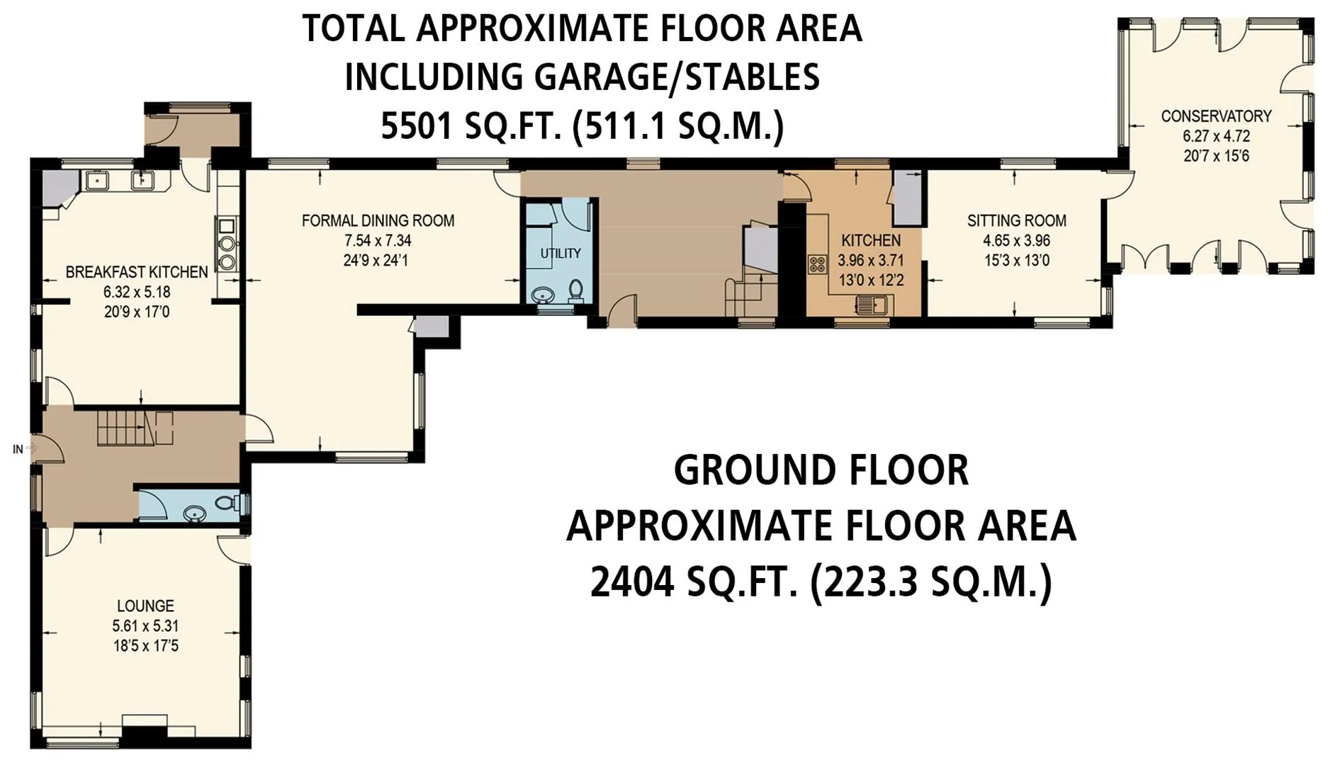 The property briefly comprises on the ground floor: Entrance hall, breakfast kitchen, front porch, lounge, WC, formal dining room, second entrance hall, utility room/WC, kitchen, sitting room and conservatory.