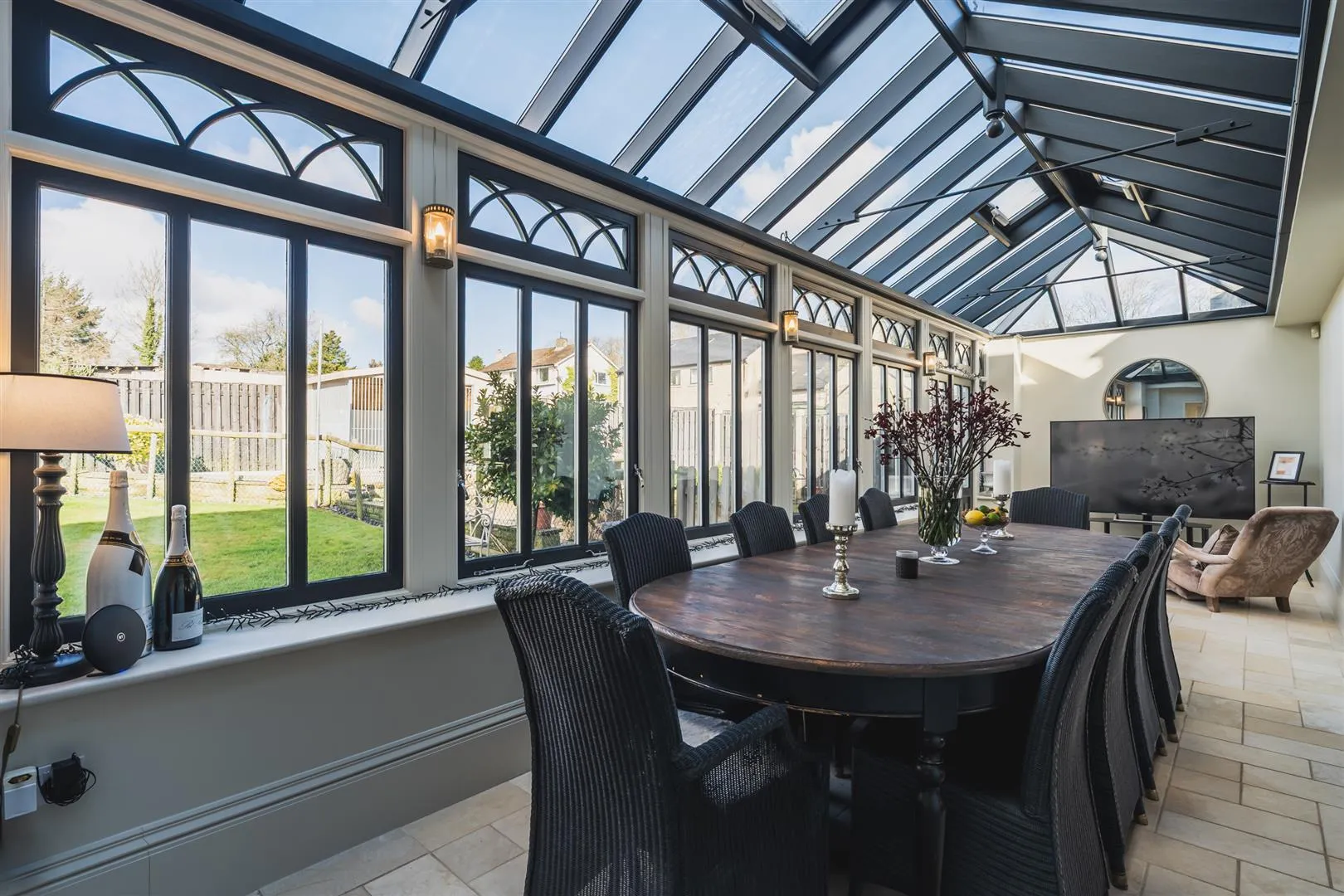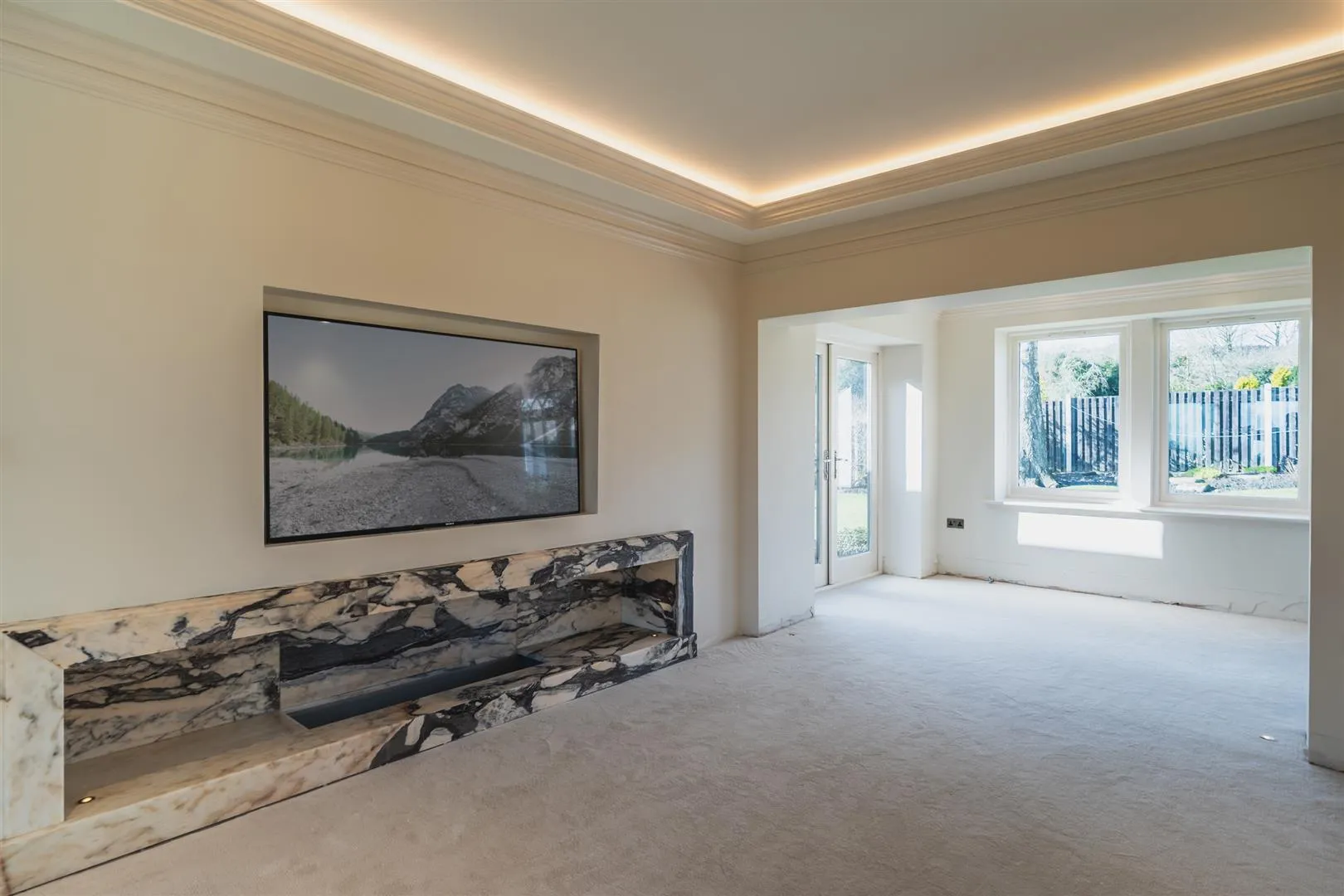A generously proportioned reception room that has recently undergone decoration works, offering a clean slate for a new purchaser. Having a rear facing hardwood double glazed window, coved ceiling, recessed lighting, central heating radiators, telephone point and deep skirtings. The focal point of the room is the marble fireplace surround and there is provision for a wall mounted television above. Double hardwood doors with double glazed panels open to the rear of the property. A wide opening also gives access to the orangery.