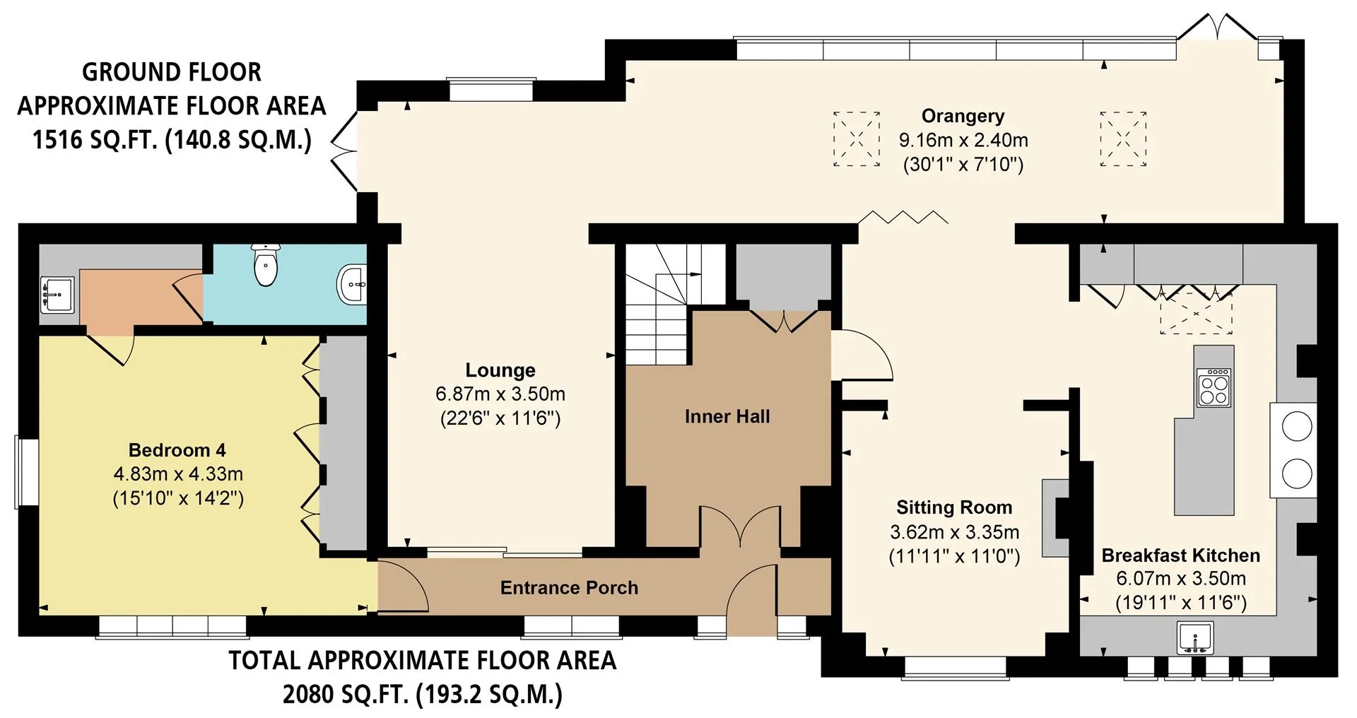 The property briefly comprises of on the ground floor: Entrance porch, lounge, bedroom 4, utility room, bedroom 4 WC, inner hall, under-stairs storage cupboard, hallway, sitting room, breakfast kitchen and orangery.