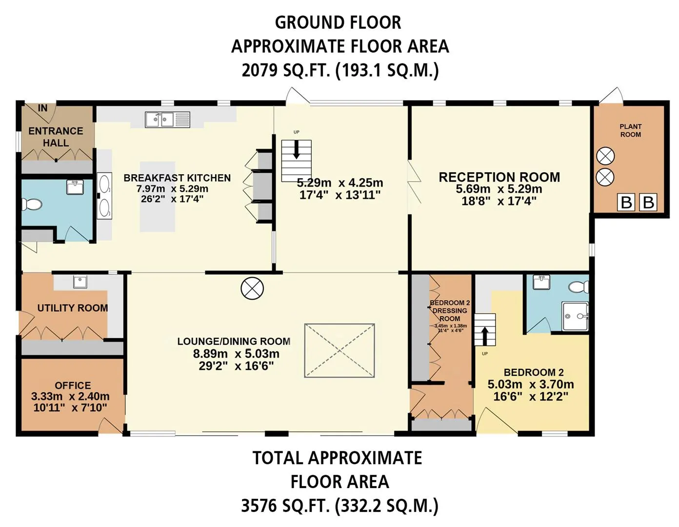 The property briefly comprises on the ground floor: Entrance hall, breakfast kitchen, lounge/dining room, reception room, utility room, office, bedroom 2 hallway, bedroom 2, bedroom 2 dressing room, bedroom 2 en-suite, inner hallway, WC and storage cupboard.