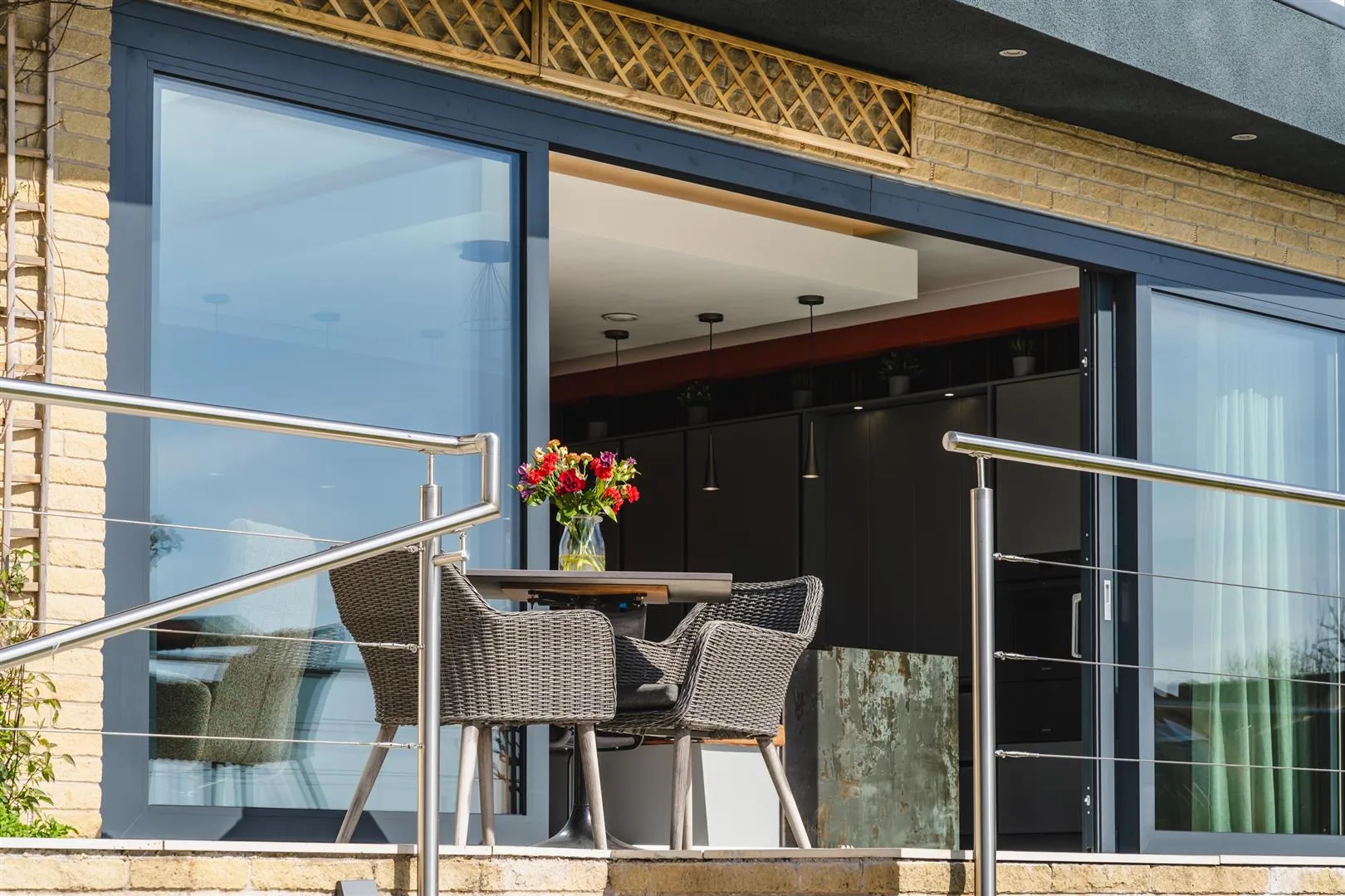 To the rear, there is a pleasant porcelain flagged seating terrace that spans the width of the property and makes the most of the property’s south-facing aspect. The terrace has exterior lighting, an external power point and is enclosed by stainless steel balustrading. Access can be gained to the dining kitchen.