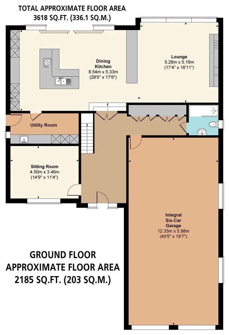 Purpose-built to accommodate six vehicles, the integral garage has the benefit of heating, electric roller shutter doors, and provides an exceptional amount of space for a variety of uses, such as an at-home gym or office. There is also potential to repurpose the garage into additional living space or leisure facilities, if desired.