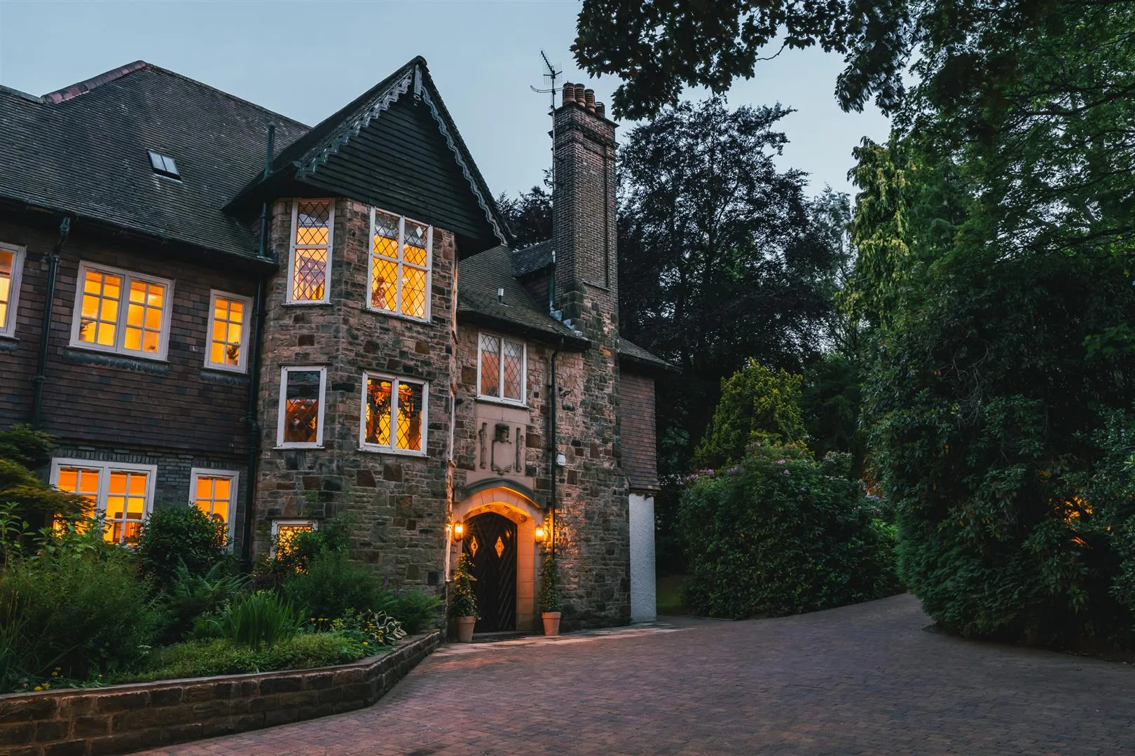 From Carsick Hill Way, an intercom operated, electric gate opens to The Quarters. A block paved driveway that is flanked by established rockery borders incorporating trees and shrubs leads down to the front of the property.