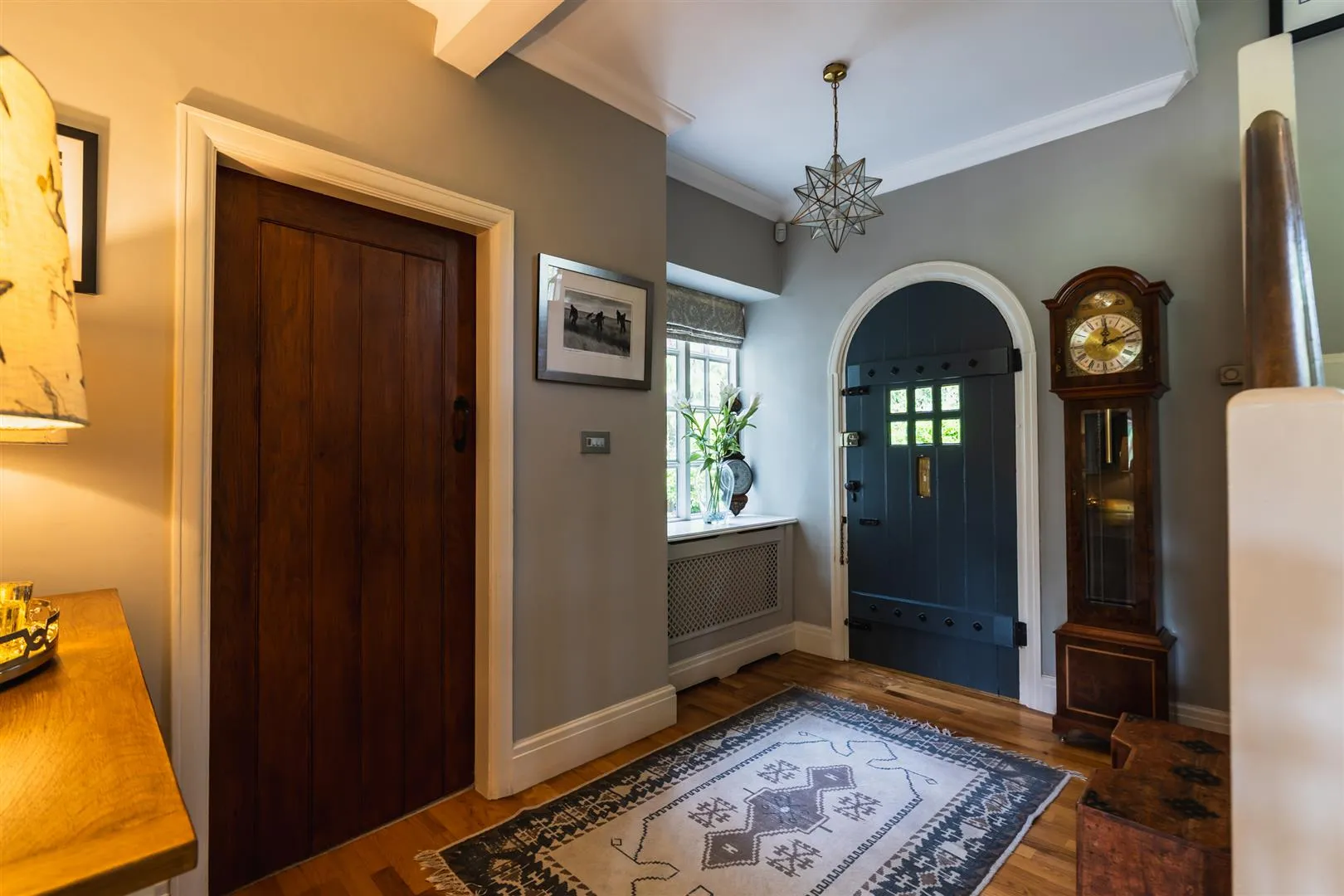 Providing a secondary entrance and having a side facing timber double glazed panel, coved ceiling, pendant light points, central heating radiators with decorative covers and oak flooring. Oak doors open to the lounge, boiler cupboard, cloakroom/WC and snug. Double timber doors with glazed panels and matching side panels also open to the dining room. A heavy timber door with glazed panels opens to the rear of the property.