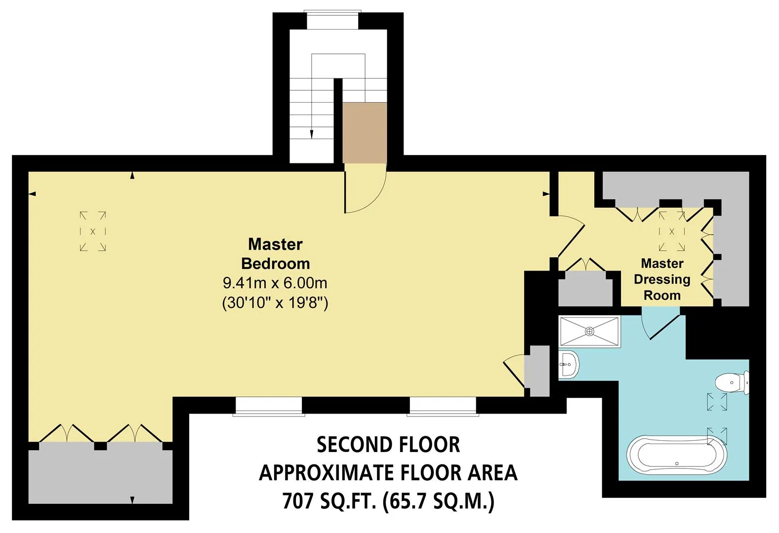 On the second floor: Landing, master bedroom, master dressing room and master en-suite bathroom.