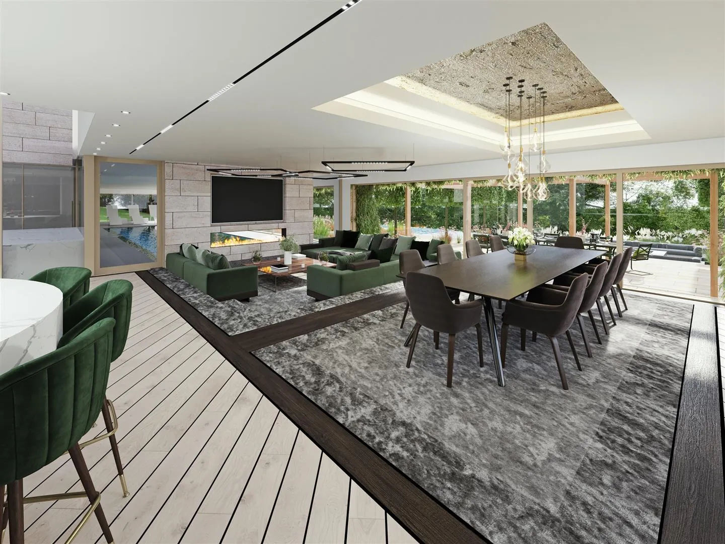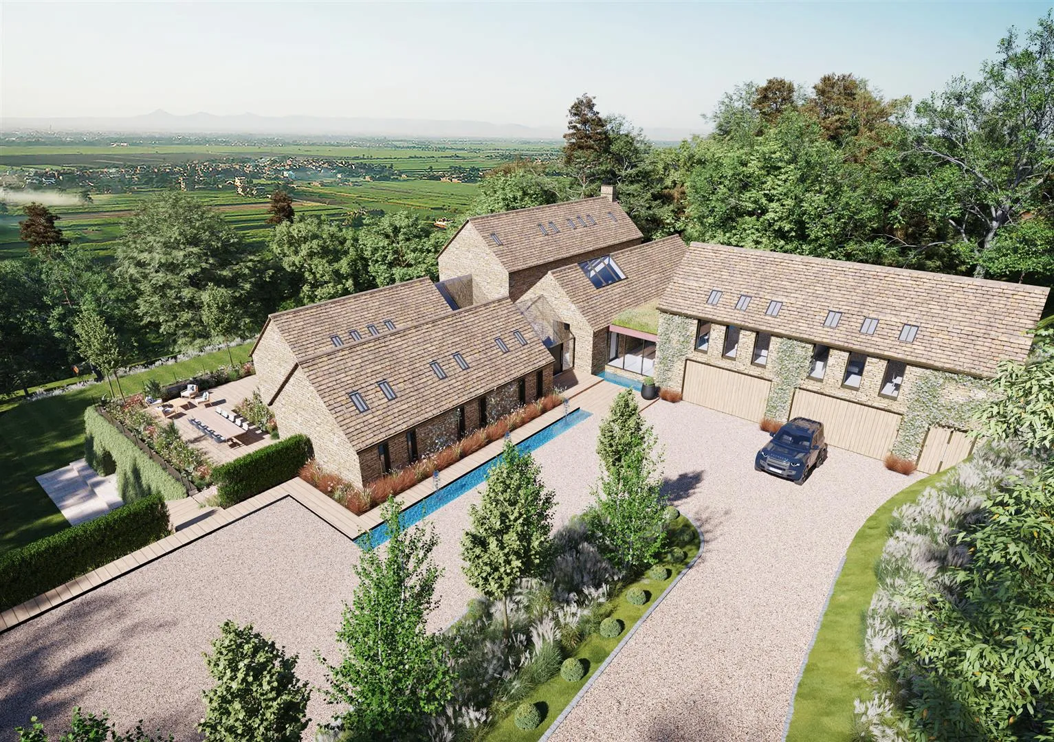 The proposed plans have been thoughtfully considered for the requirements of modern family living, resulting in incredible spaces that compliment the property’s surroundings. Where panoramic views over Hope Valley are framed by floor-to-ceiling glazing and a peaceful environment can be enjoyed throughout, the potential for River View has been made tangible through imaginative design.