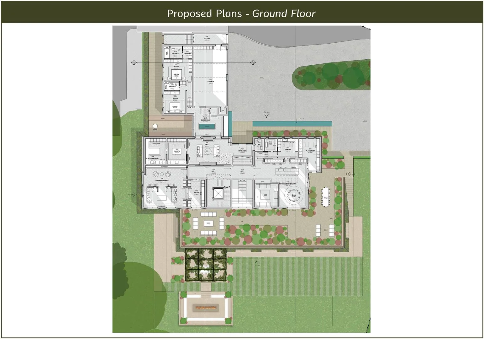 The feeling of luxury has been incorporated into every corner of this residence, with sizeable living spaces set over three floors and an impressive wrap-around outdoor terrace to two of the levels. The ground floor is where you will find a grand entrance hallway, connecting to an open plan living kitchen, library and an additional hallway leading to two bedroom suites and the integral triple garage. The remainder of the bedrooms will be set on the first floor, all with en-suites and dressing rooms. For anyone seeking space to host, the proposed plans for River View dedicate an entire lower ground floor for leisure and entertaining, including a twelve-seater cinema and bar. An impressive swimming pool, along with changing facilities, sauna and steam rooms, a gymnasium and a treatment room, present the perfect retreat for a leisurely pace of life.