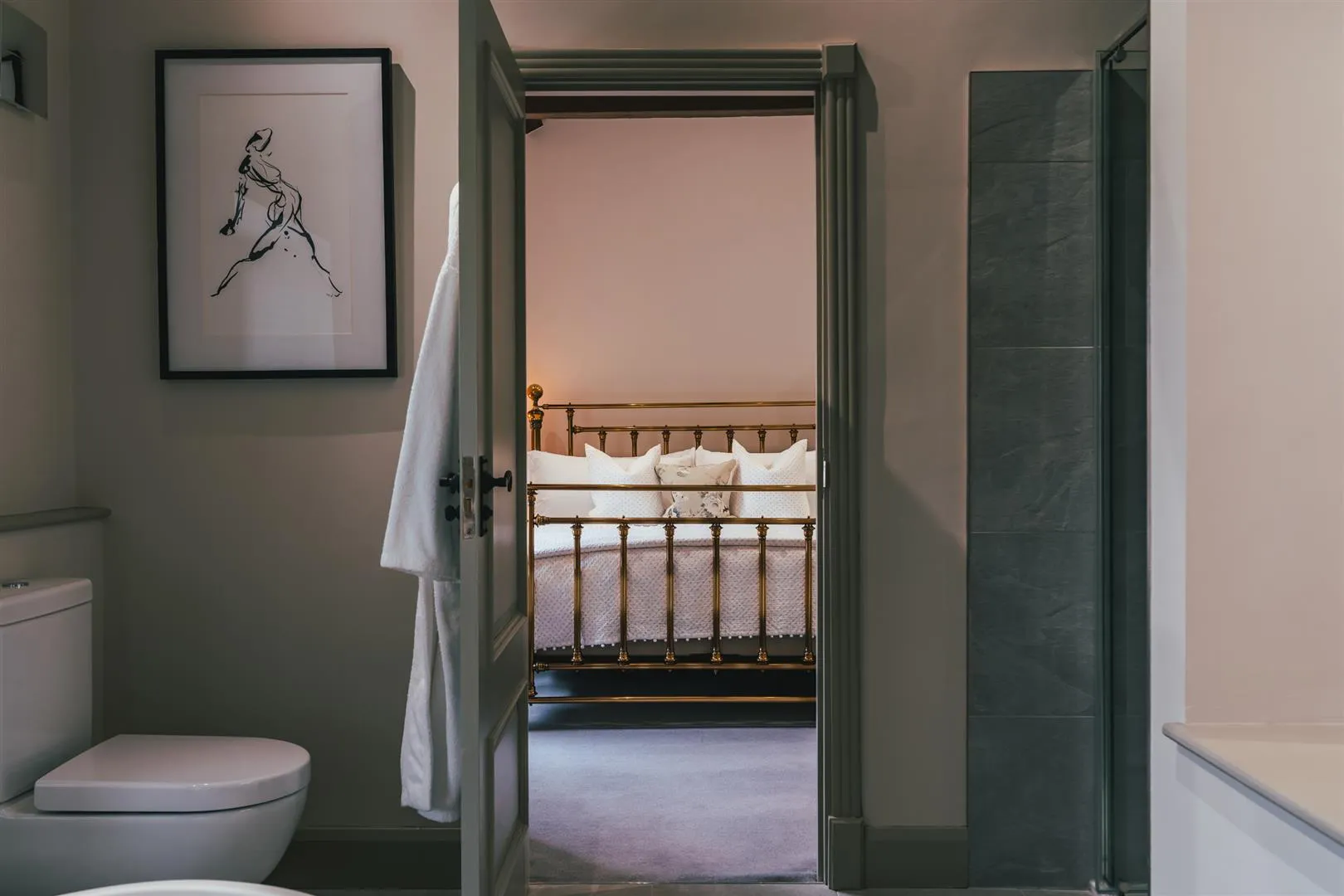 A luxuriously appointed bathroom that offers the flexibility to be used as the primary bathroom or en-suite to bedroom 3. Having a front facing hardwood double glazed sash window with fitted shutters, vaulted ceiling with exposed timber beams, recessed lighting, extractor fan, central heating radiator with a towel rail and tiled flooring. There is a suite in white, which comprises a Villeroy & Boch low-level WC and a Victoria + Albert wash hand basin with a Victoria + Albert chrome mixer tap and a fitted vanity mirror above. Also having a freestanding Victoria + Albert slipper bath with a Victoria + Albert chrome mixer tap and a hand shower facility. To one corner, is a shower enclosure with a fitted Axor shower and a glazed screen/door. Hardwood doors open to the landing and bedroom 3.
