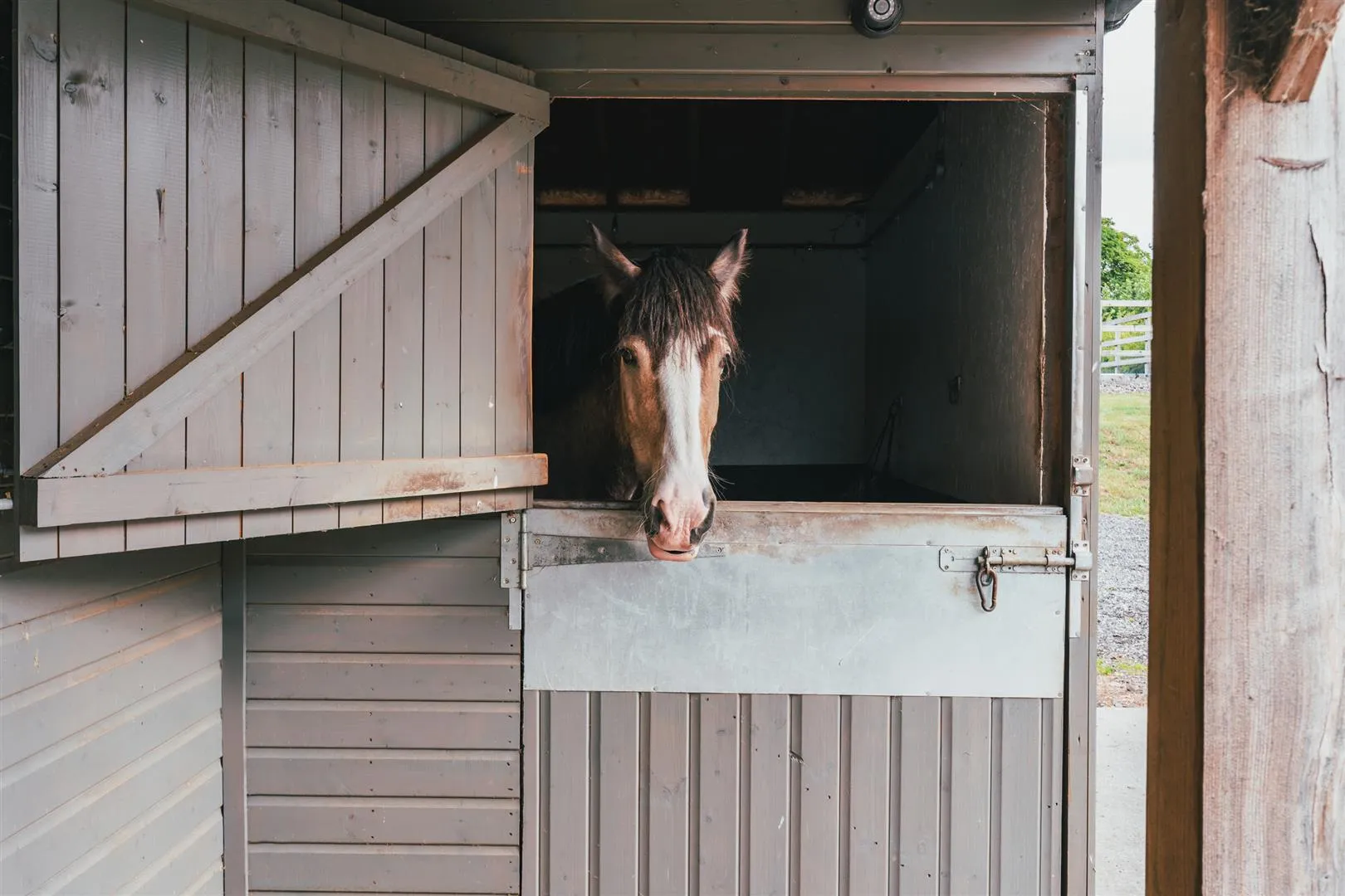 Having a timber stable-style door, a window, light and a rubber matting floor.
