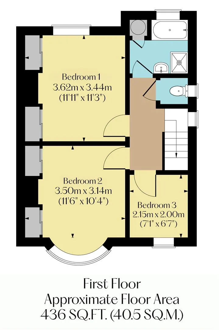 On the first floor: Landing, bedroom 3, bedroom 2, bedroom 1, WC and bathroom.