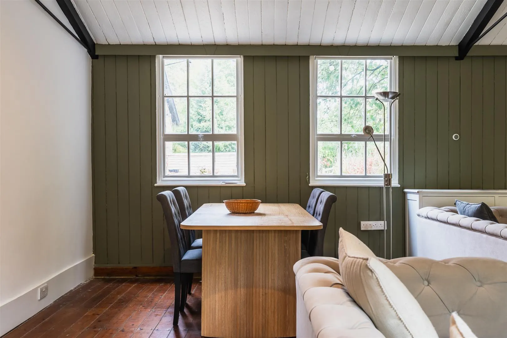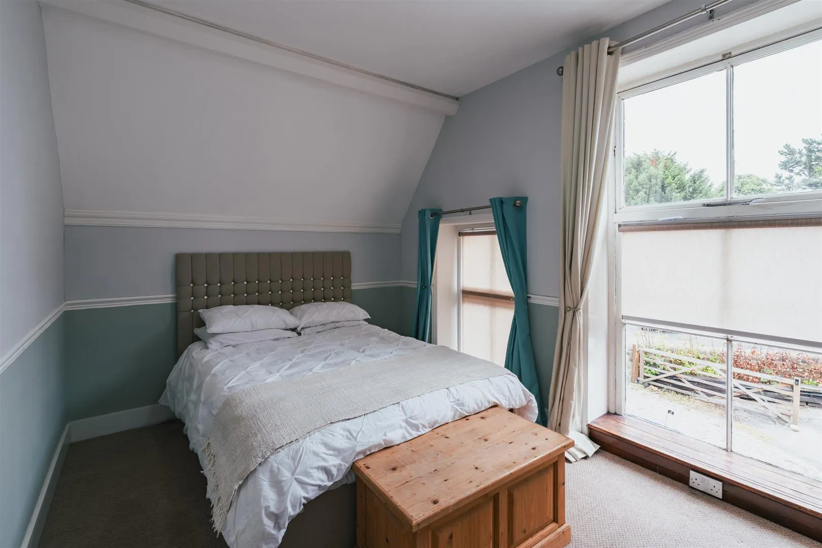 Another double bedroom with a front facing timber glazed window, front facing timber glazed panel, flush light point, and dado rail.
