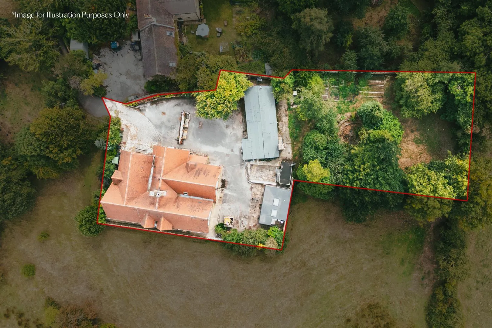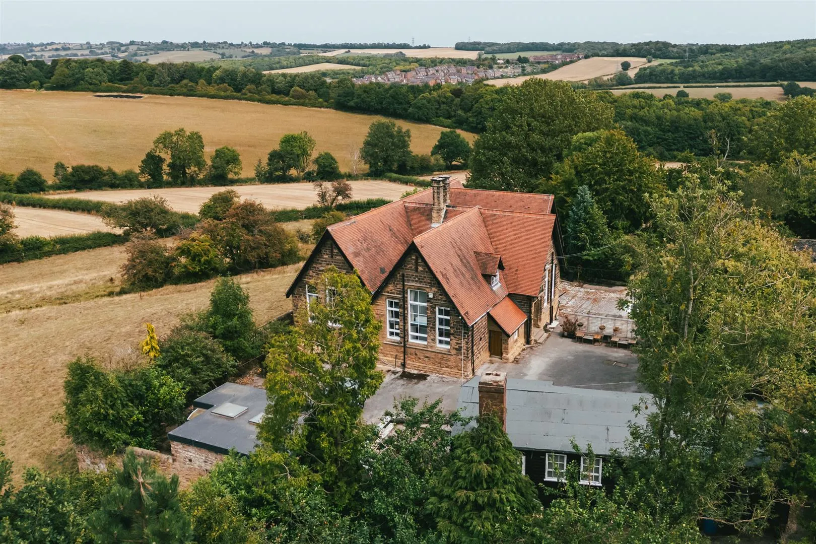 Stainsby Manor House School is accessed by a traditional wooden gate, which opens to an extensive wrap-around driveway that is part-cobbled and allows parking for up to 15 vehicles. Within the grounds are two detached cabins for ancillary use to the main house, one with two bedrooms and the other serving as studio accommodation. Behind one of the cabins is the property’s garden, containing woodland, a fire pit and allotment areas and even a WWII bunker that is still accessible.
