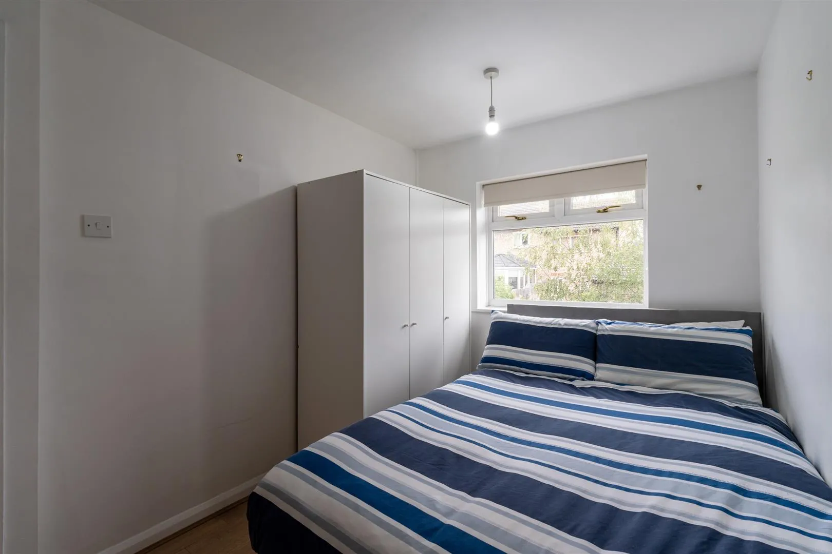 Another double bedroom having a front facing UPVC double glazed window, pendant light point and a central heating radiator. Double timber doors open to a storage cupboard that has shelving and a timber door opens to a cupboard that houses the Vaillant boiler.