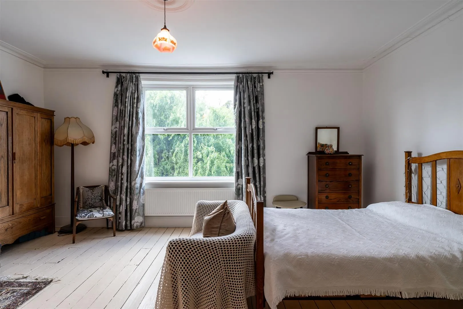 Another double bedroom having a front facing UPVC double glazed window, coved ceiling, pendant light point with a decorative ceiling rose, central heating radiators, deep skirtings and pine flooring. The focal point of the room is the original decorative cast-iron fireplace.