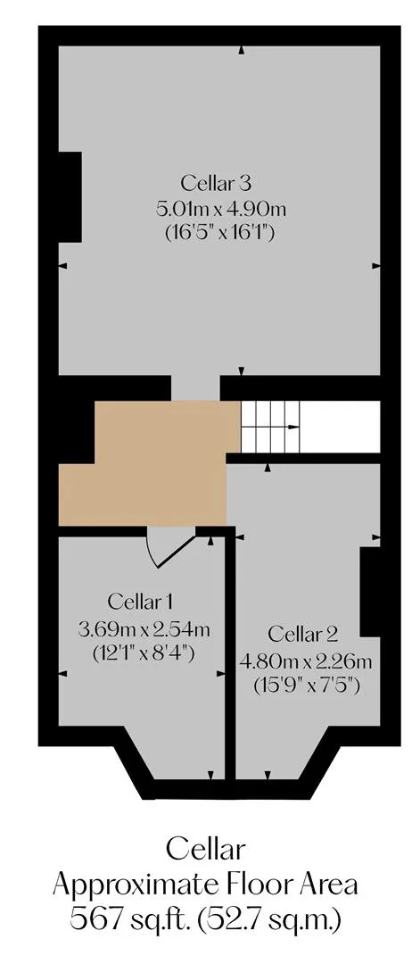 Having light. A timber door opens to cellar 1 and openings give access to cellar 2 and cellar 3.