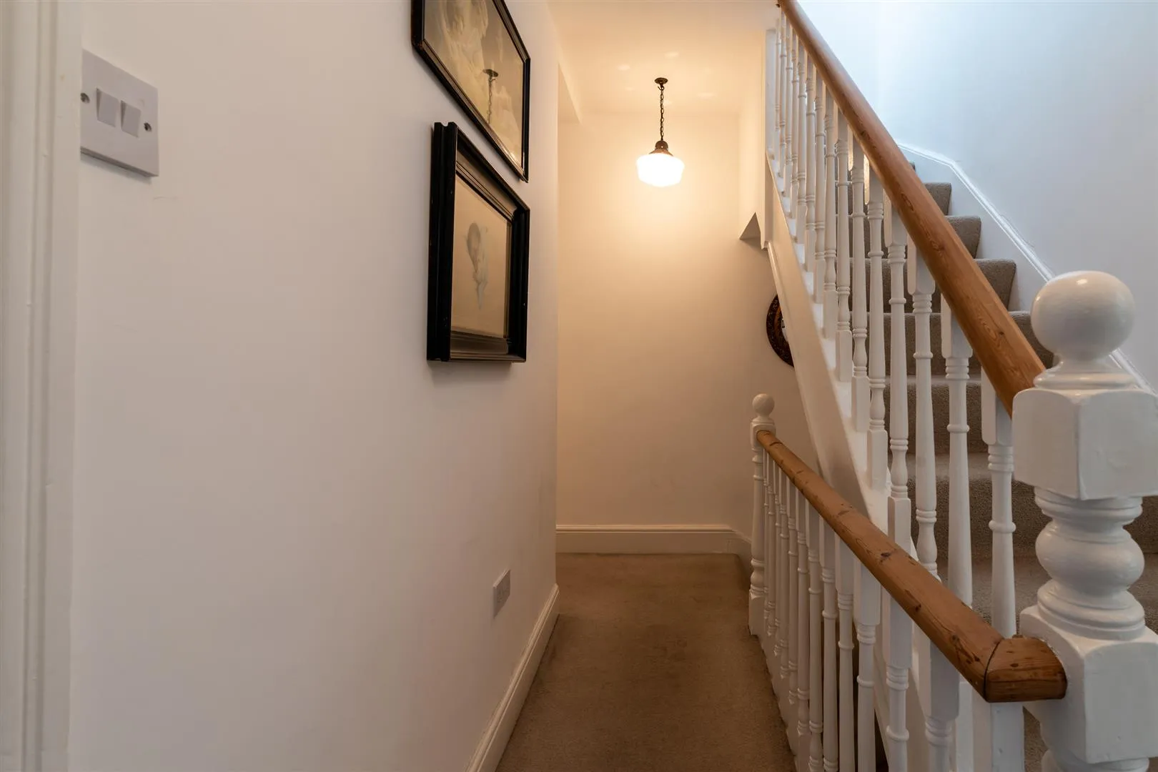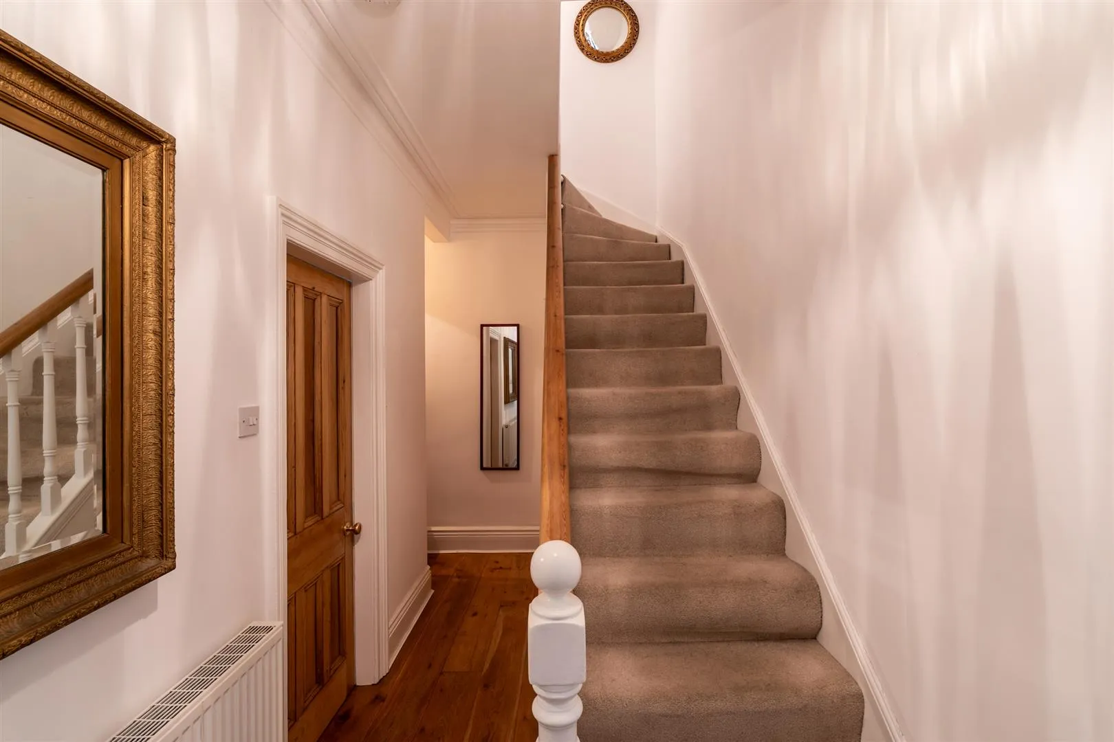 From the entrance hallway, a staircase with a timber handrail and balustrading rises to the first floor.