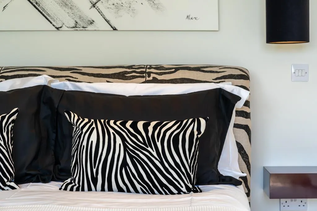 An exceptionally spacious double bedroom with an obscured double glazed skylight, recessed lighting, air distribution vents, TV/aerial point, data points and tiled flooring with under floor heating. Timber doors open to the bedroom 2 en-suite and bedroom 2 wardrobe.