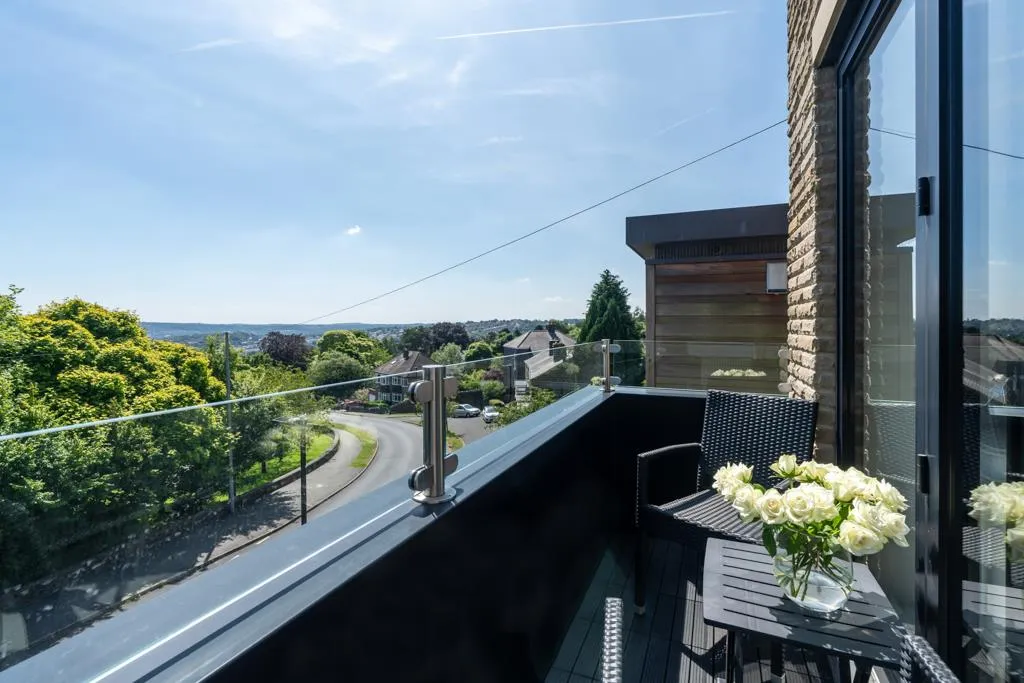Beginning on the ground floor, the entrance hall extends a warm welcome to the home and links to the integral garage and a double bedroom suite that is exceptionally spacious and perfect for guests. An oak staircase with glazed balustrading connects the three floors together and on the first floor there is a beautiful lounge and a well-appointed breakfast kitchen. Being the primary reception room of the home, the lounge presents a bright space that has been stylishly decorated, creating a lovely relaxing feel and even has a Juliet balcony. The breakfast kitchen contains high-quality integrated appliances and has bi-folding doors, which open out onto a fabulous, low-maintenance rear garden. Rising to the second floor, there are three bedrooms, including a master suite boasting a balcony overlooking far-reaching views of Sheffield.