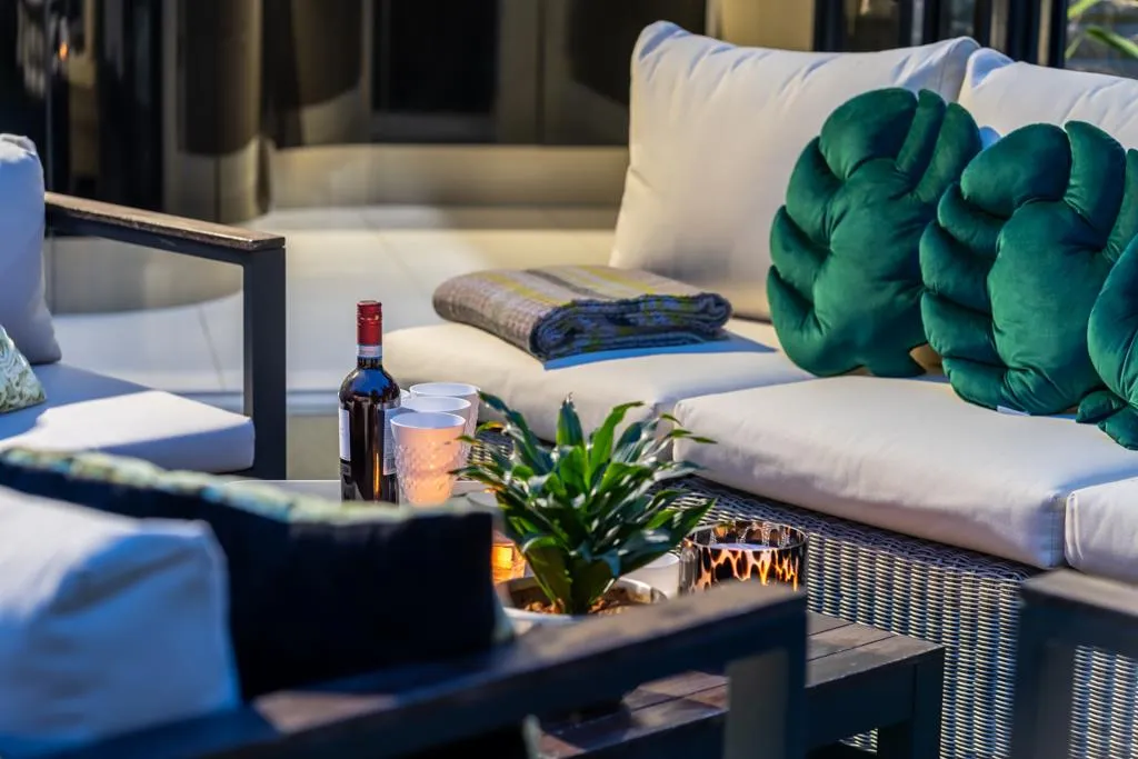 A pleasant seating terrace providing a relaxing place for enjoying the views. Having glazed balustrading and an external power point.