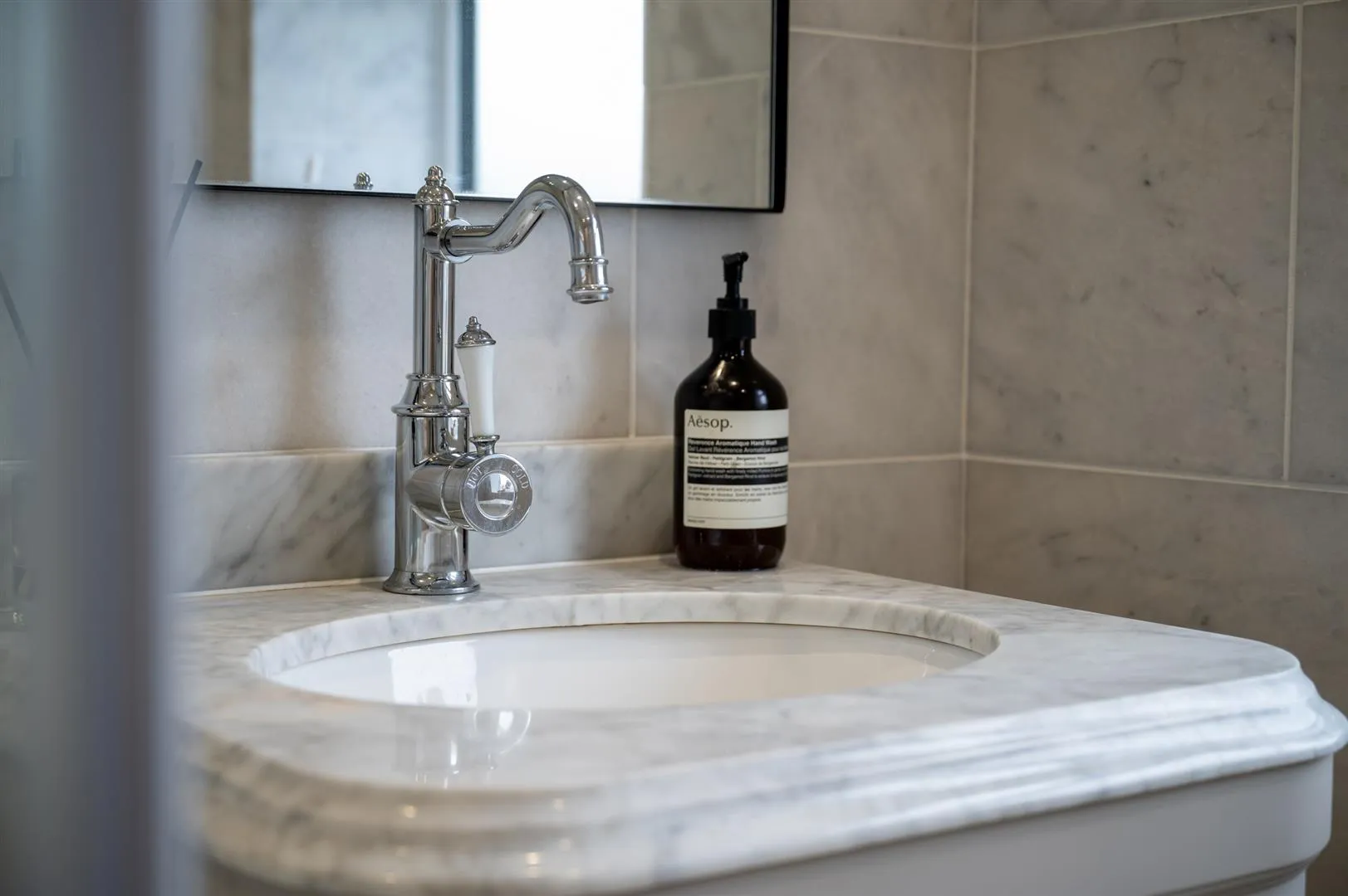On the first floor is a large family bathroom and the master bedroom offers a luxurious sanctuary with an en-suite shower room that is fully tiled in marble. The second bedroom is generously proportioned and the third is currently set up as a fabulous dressing room with a range of fitted furniture.