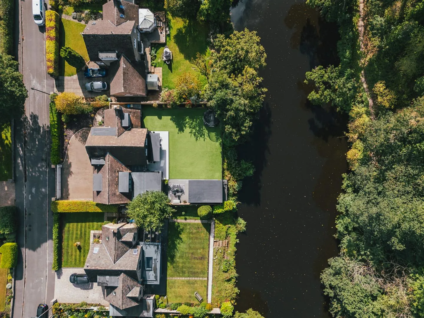 Riversyde sits on a sizeable, private plot behind a sliding electric gate, which opens to a resin driveway that accommodates parking for three vehicles, in addition to an integral double garage. The rear garden has two wonderful seating areas that enjoy the lovely vistas and to one corner is an outbuilding that is currently utilised as a home office/gym but could be ideal for a variety of other uses. A sliding door opens from the home office /gym to a superb balcony that is positioned on the riverside, perfect for enjoying a morning coffee or quiet evening.