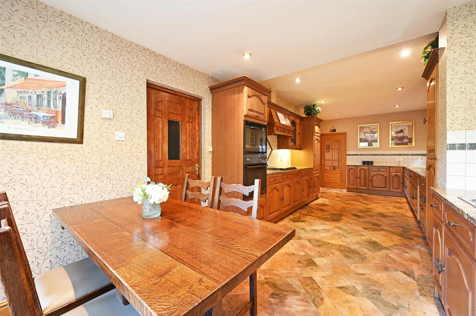 A fabulous dining room that is perfect for hosting. Having a side facing UPVC double glazed panel, coved ceiling, recessed lighting, wall mounted light points and under floor heating. Double oak doors with glazed panels open to the reception hall. An oak door with glazed panels opens to the breakfast kitchen. An access hatch within the floor provides access to the wine cellar.