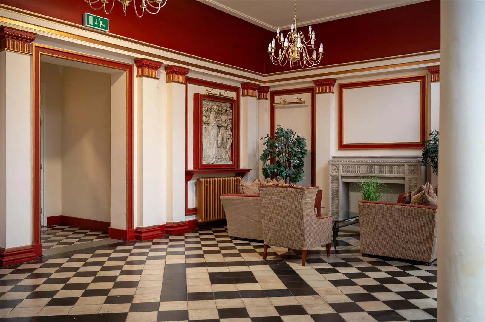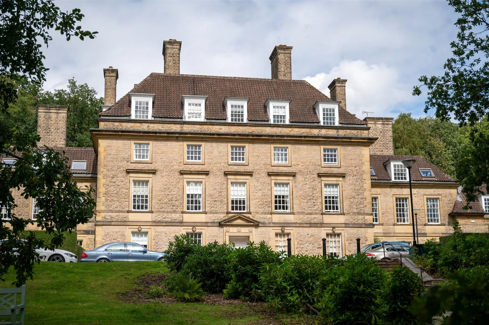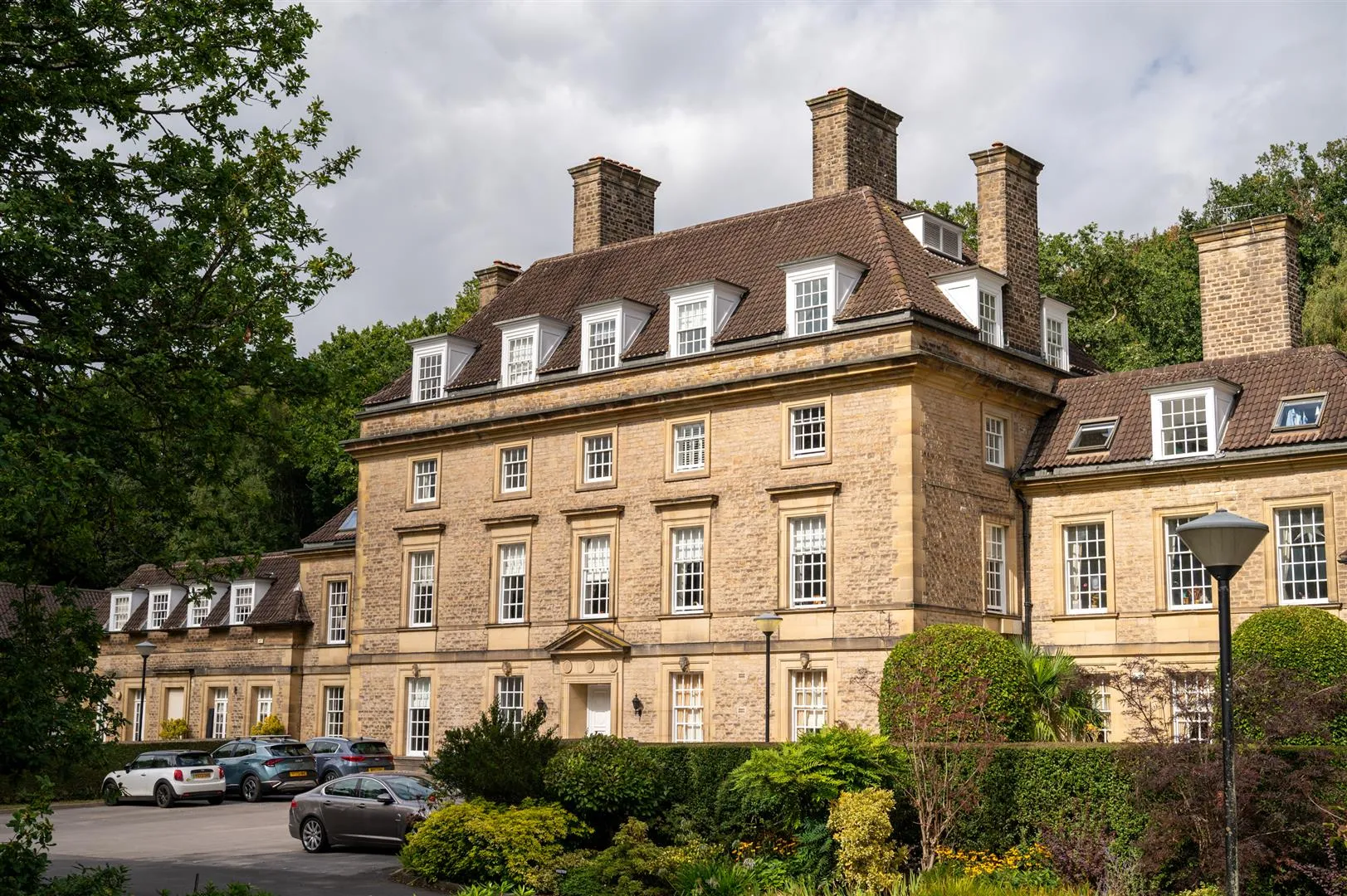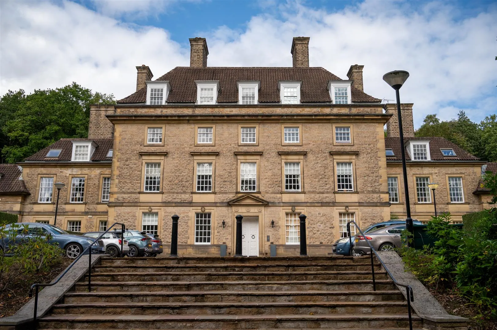 The King Edwards development is accessed through wrought iron gates, which open to a sweeping driveway that leads up to the main building. A Georgian-style entrance door opens to the impressive communal reception hall.