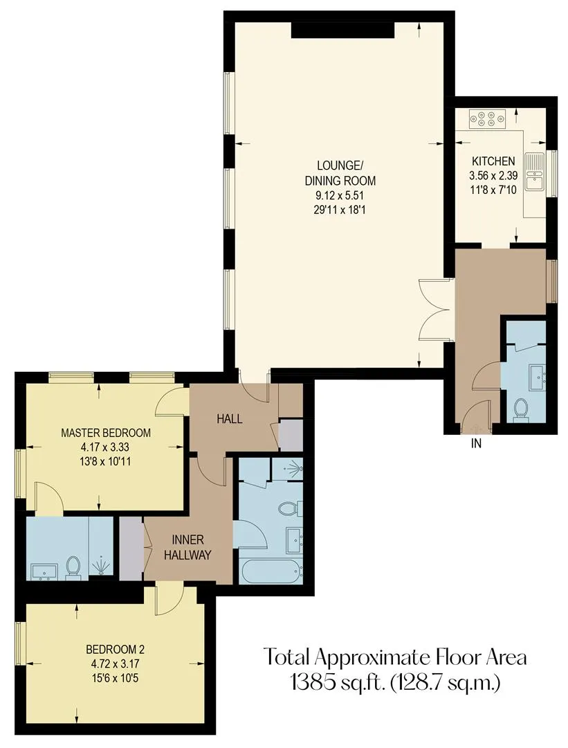 From the inner hallway, double timber doors open to the: