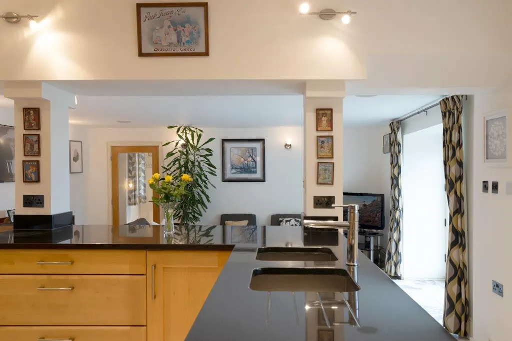 Having a rear facing double glazed window, recessed lighting, extractor fan, cloaks hanging and marble tiled flooring with under floor heating. To one corner, there are two butler sinks with a chrome mixer tap, a hand shower facility and a marble tiled splash back. Oak doors open to the utility room, WC and basement level. An oak door with a glazed panel also opens to the boot room.