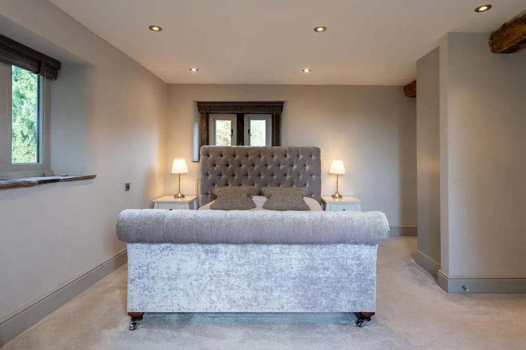 Having exposed timber beams, flush light points and timber effect flooring. An oak door opens to shower room and an opening gives access to the bedroom 3 dressing area.