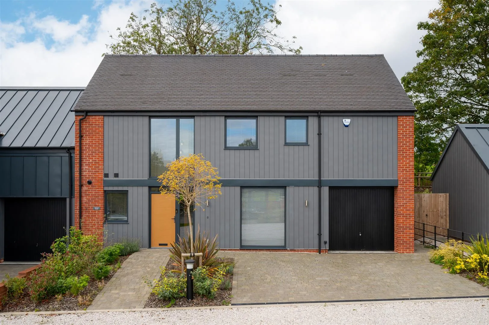 From Amber Meadow, a driveway continues to the front of Ashover House. To the front there is exterior lighting and off-road parking for two vehicles on a block paved driveway. Access can be gained to the single garage. A path continues to the right side of the property where a timber pedestrian gate opens to the rear.