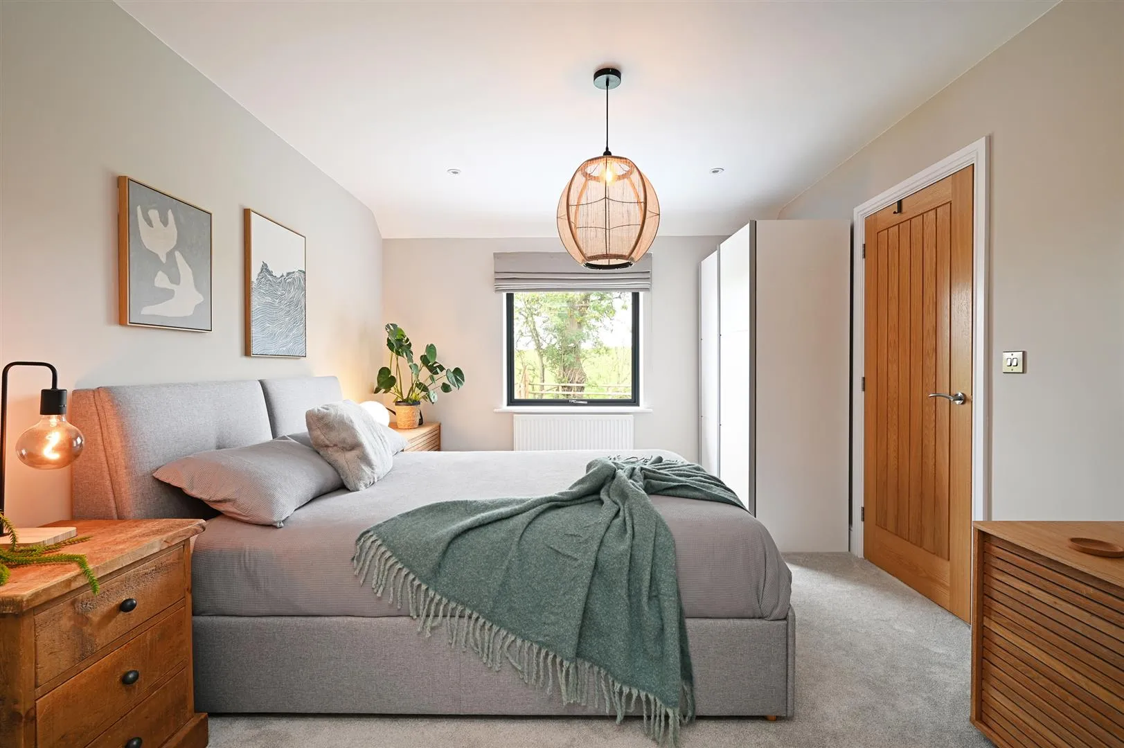 A double bedroom having a rear facing aluminium double glazed window, recessed lighting, pendant light point and a central heating radiator. A timber door opens to the master en-suite shower room.