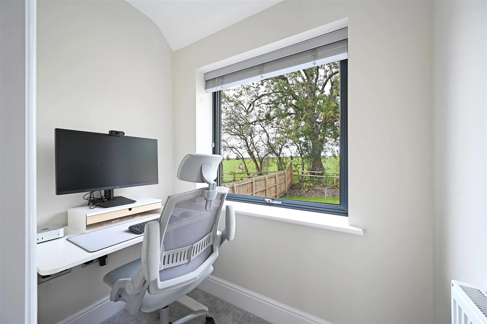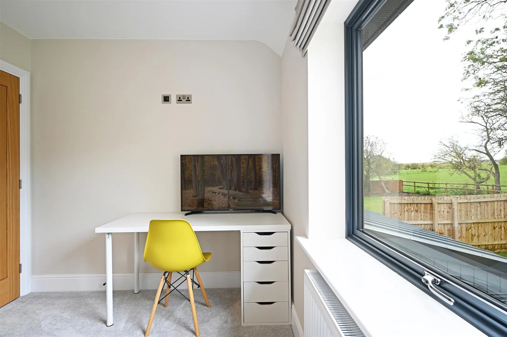 Having a rear facing aluminium double glazed window, pendant light point, data point and a central heating radiator. A timber door opens to the bedroom 4 en-suite shower room.
