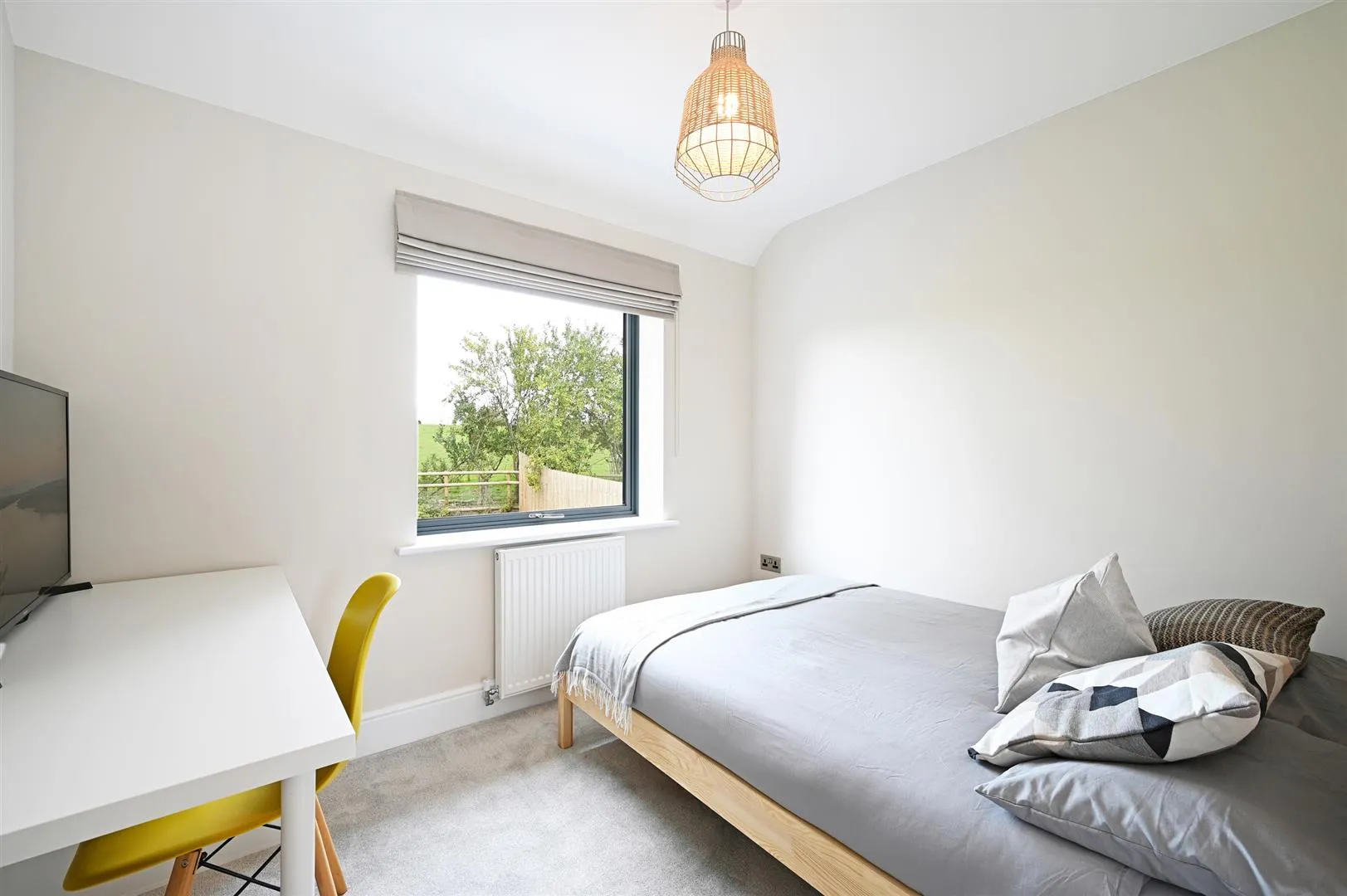 A further double bedroom having a front facing aluminium double glazed window, flush light point and a central heating radiator.
