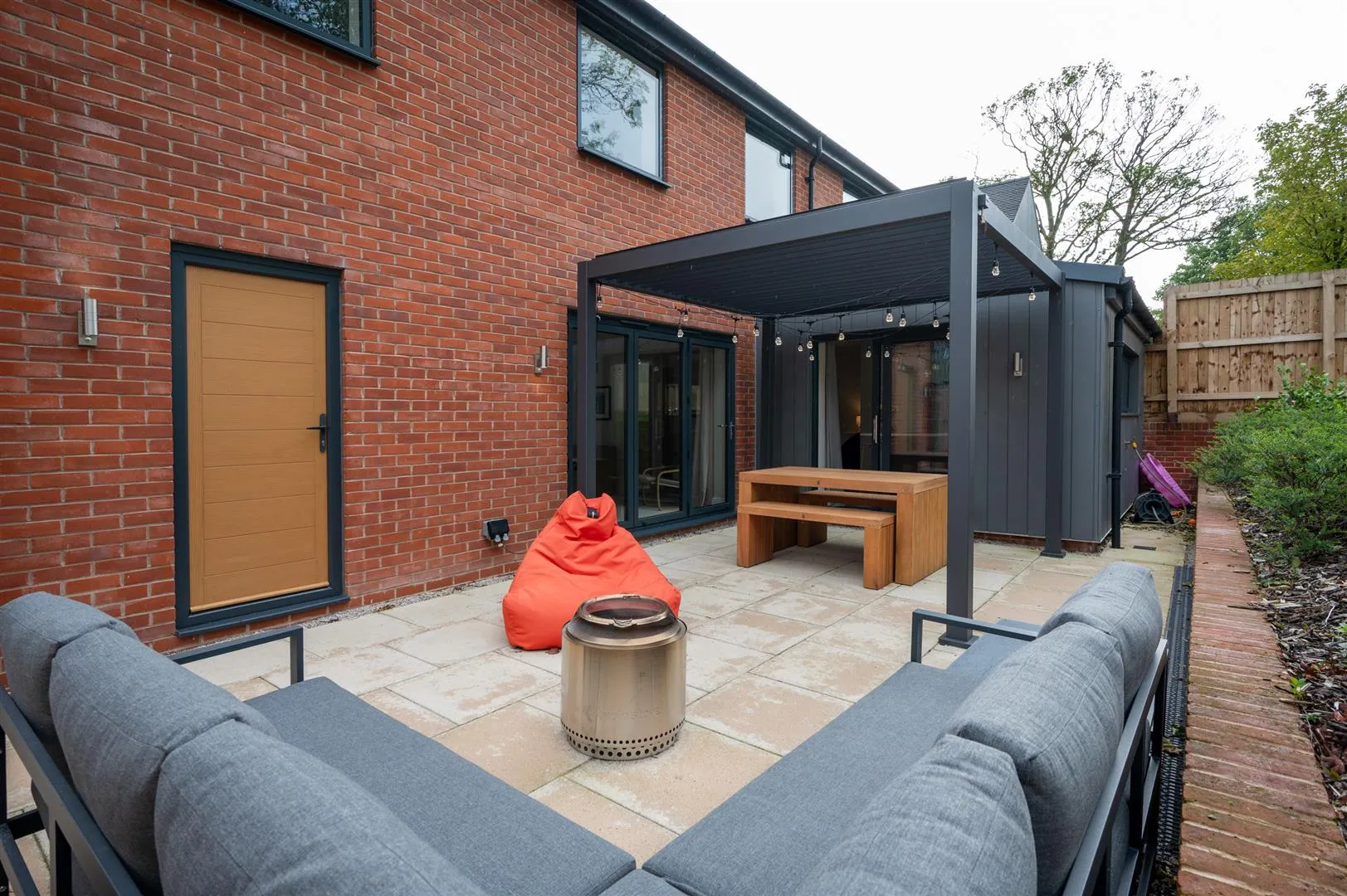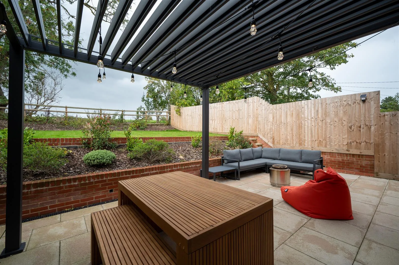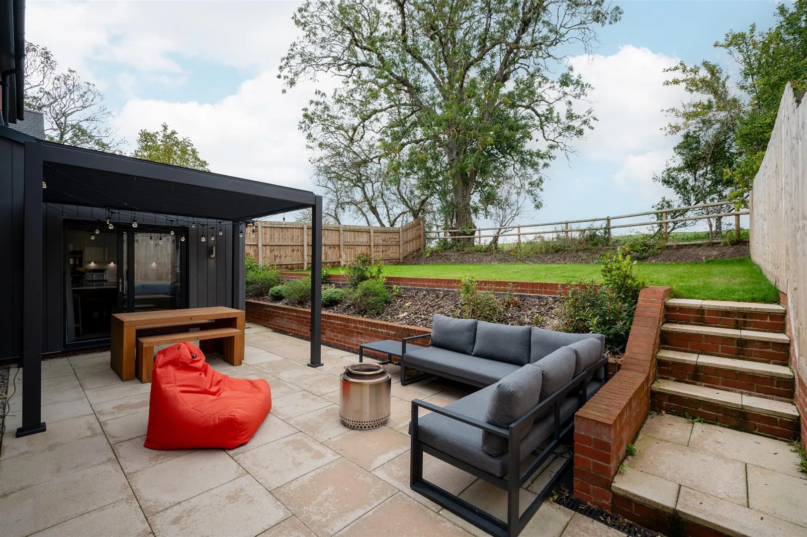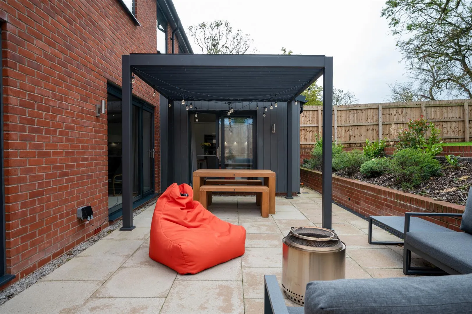 Beyond the patio is a pleasant garden mainly laid to lawn with a plant bed. The garden is fully enclosed by timber fencing.