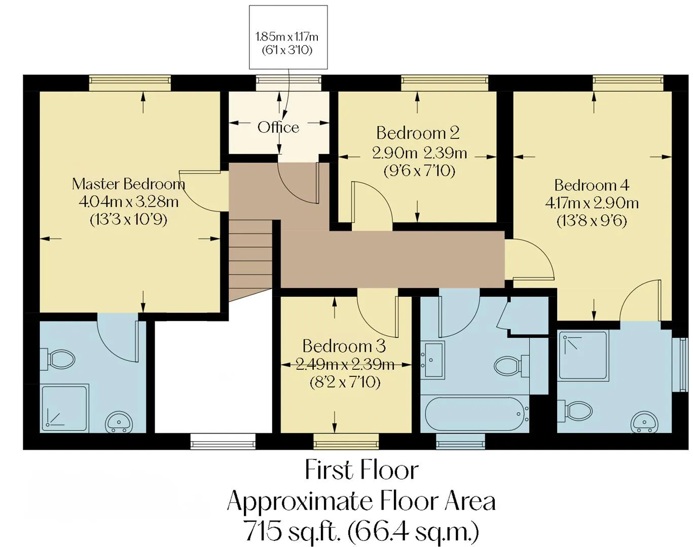 On the first floor: Landing, master bedroom, master en-suite shower room, office, bedroom 2, bedroom 3, family bathroom, bedroom 4 and bedroom 4 en-suite shower room.