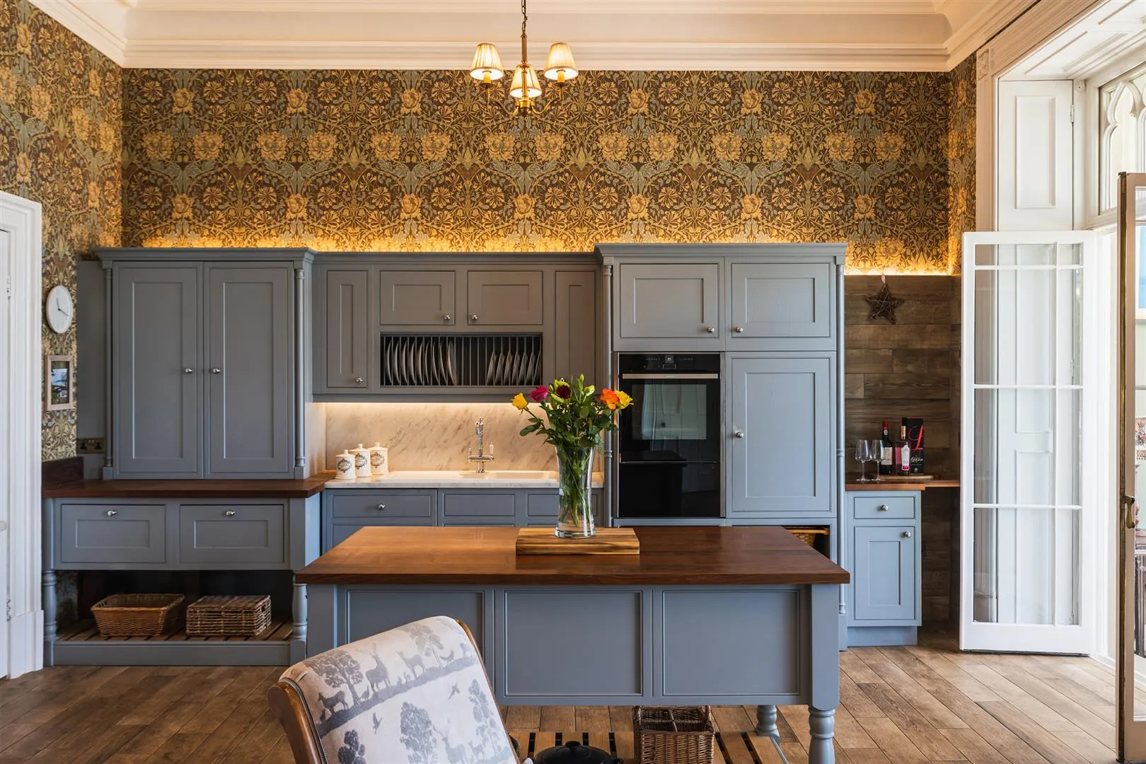 1 Wansfell Holme serves as the main residence for the current owners, comprising a wealth of period features, including French windows with Gothic traceried fanlights, high ceilings with intricate coving, deep skirtings, detailed architraves and wooden shutters to the windows. A sense of grandeur is felt throughout the home, with the entrance hall extending a palatial welcome and featuring a curved sandstone staircase. The centre point of the property is undoubtedly the orangery, which presents a relaxing spot to enjoy the breathtaking views and seamlessly connects to the outdoor seating terrace and also the breakfast kitchen through three sets of double doors. Boasting a quality specification with marble work surfaces and Neff appliances, the breakfast kitchen is a stylish yet functional space with feature LED lighting and a butler’s pantry within the cabinetry. Now used as a cosy sitting room, the former library contains a rare Westmoreland fireplace with a log burner. All four of the bedrooms on the first floor are extremely well-proportioned, with two benefitting from an en-suite, and also a family shower room.