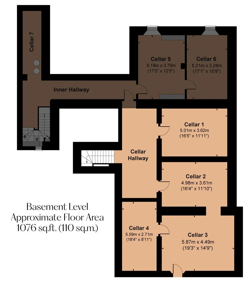 Basement level: Cellar hallway, cellar 1, cellar 2, cellar 3 and cellar 4.