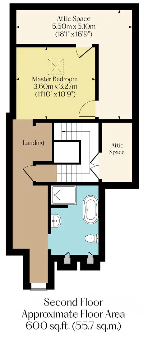 On the second floor: Landing, master dressing area, master en-suite bathroom, master bedroom.