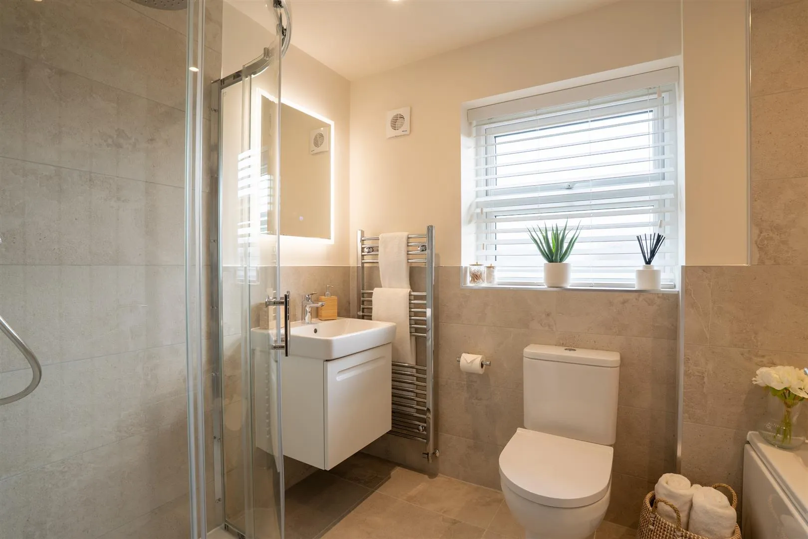 The Hornbeam has a total floor area of approximately 1334 sq.ft. (124 sq.m.) A fabulous living kitchen allows ample space for dining, relaxing and cooking, and houses a luxury Karl Benz kitchen with Neff integrated appliances. A bay-windowed living room also offers a separate space for unwinding. The bedrooms occupy the first floor, along with a family bathroom, and comprise a generous master bedroom suite, two further double bedrooms and an additional bedroom. The exterior of the Hornbeam caters well to families, providing plenty of outdoor space within enclosed, landscaped gardens.