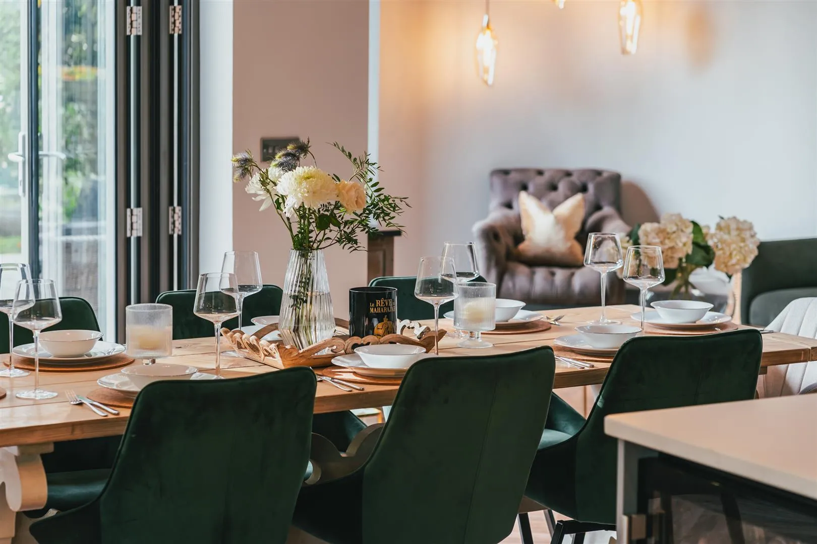 A superb reception area that seamlessly transitions to the outdoor rear terrace through a bi-folding powder coated aluminium door with double glazed panels. Also having a double glazed skylight with feature LED lighting, pendant light points, TV/aerial/data points and Karndean herringbone flooring with under floor heating.