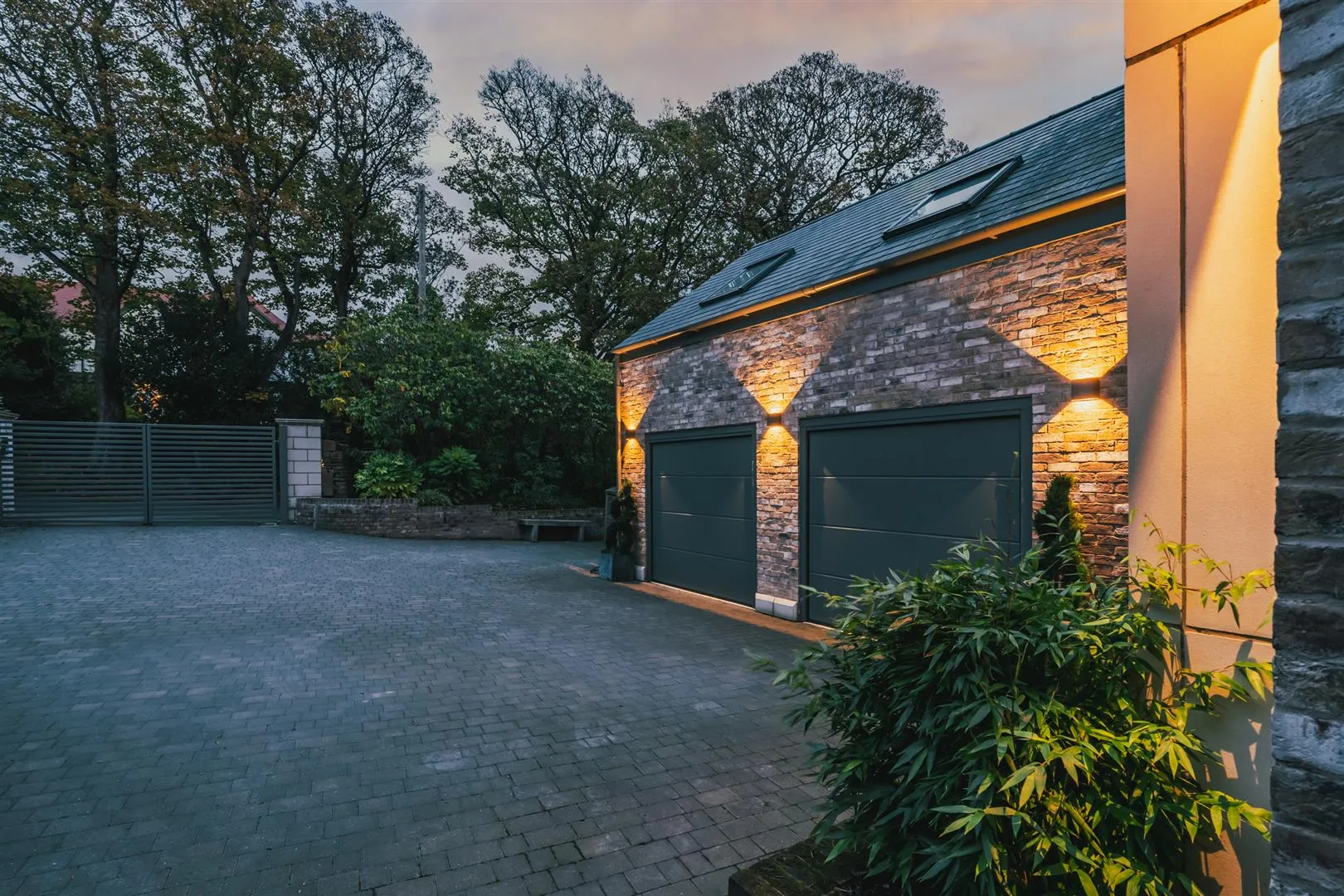 From Whirlow Lane, powder coated aluminium electric gates open to the front of the property. A block paved driveway provides parking for three vehicles and has exterior lighting, a water tap and raised planters containing mature trees and shrubs. There is provision for an electric car charging point. Access can be gained to the main entrance door and integral double garage.
