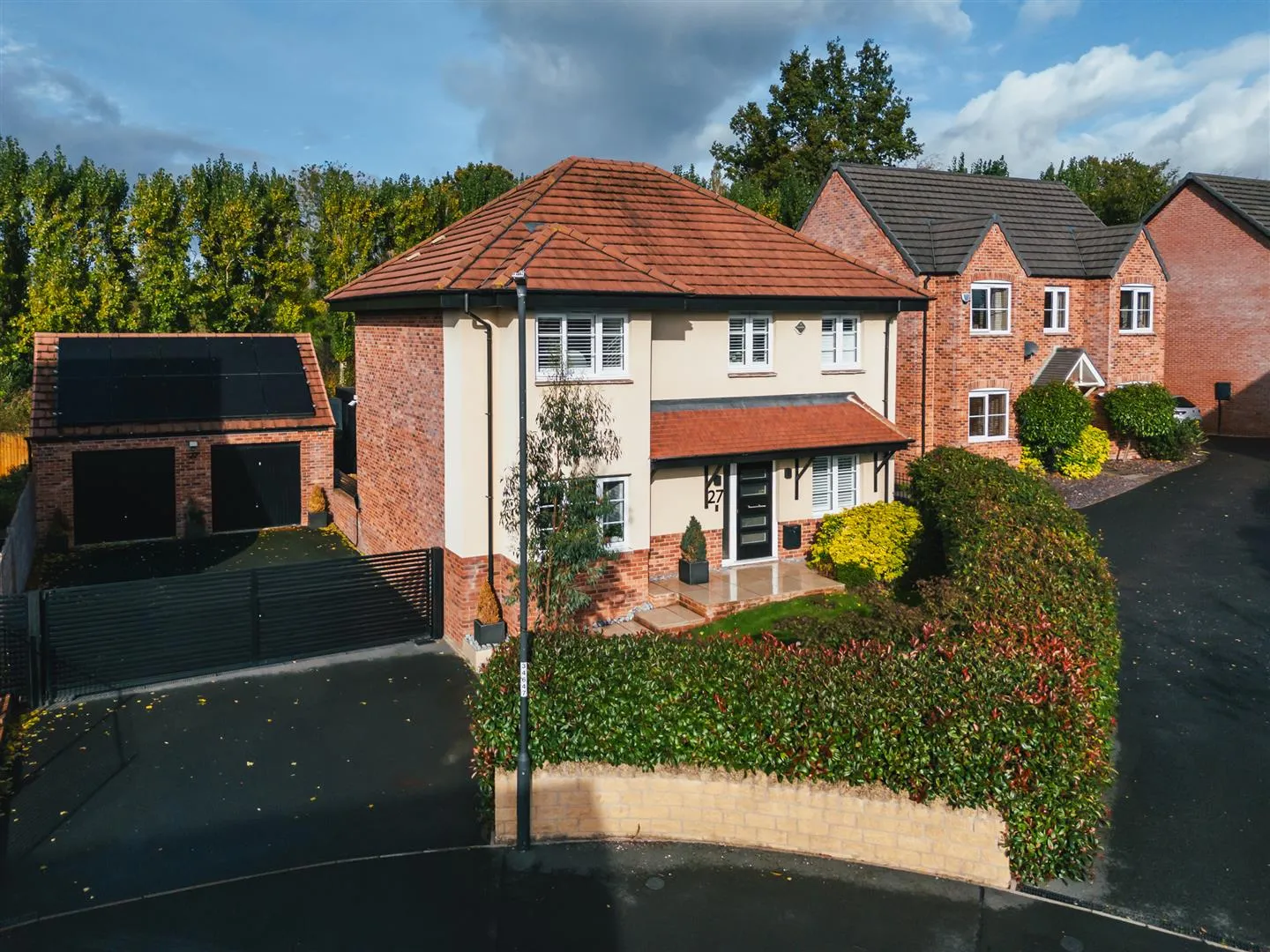 Externally, 27 Pomegranate Road caters well to outdoor dining and entertaining thanks to its large porcelain flagged seating terrace, which easily accommodates comfortable seating and has the provision for a hot tub. Set to one corner of the enclosed garden is a garden room, perfect for working from home or a gymnasium, and is clad in western red cedar, fully heated, insulated and has hardwired broadband. To one side of the house is a gated driveway that provides parking for four vehicles, in addition to a double garage. On the roof of the double garage are solar panels, which generate energy for use in the home and a storage battery.