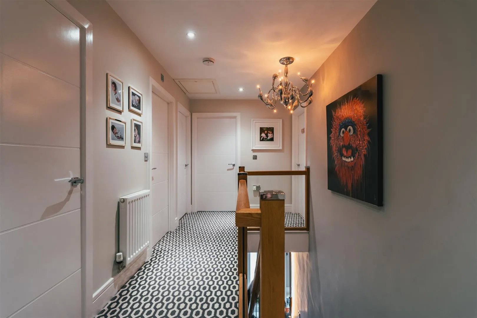 Having recessed lighting, a pendant light point and a central heating radiator. Doors open to bedroom 2, master bedroom, boiler/cylinder store, linen cupboard, family bathroom, bedroom 4, bedroom 5 and bedroom 3. Access can also be gained to the loft space.