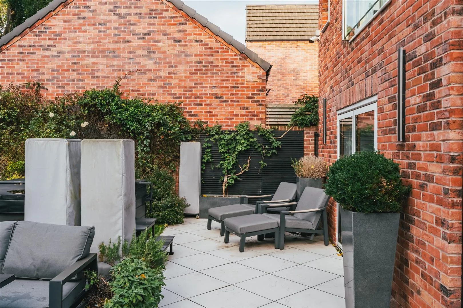 To the rear, there is a wonderful porcelain flagged terrace with exterior lighting and a water tap. Access can be gained to the orangery and lounge. There is provision for a hot tub.