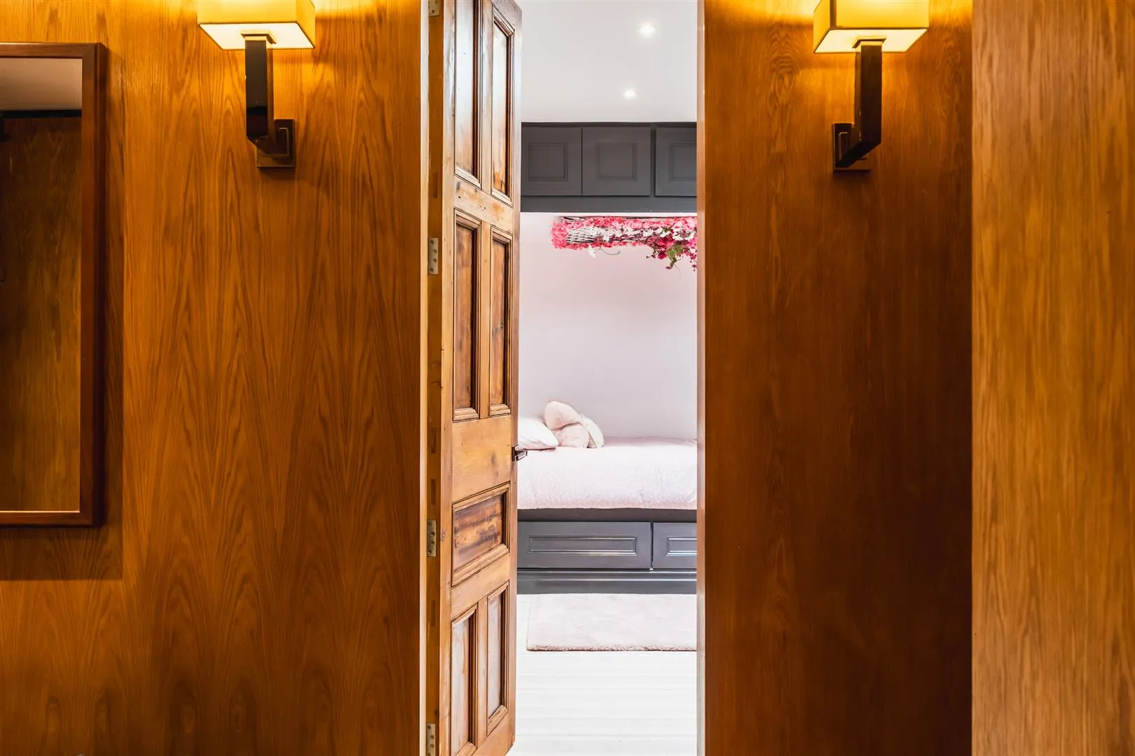 From the entrance hall, a tall oak door opens to: