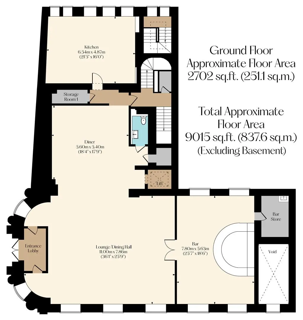 The property briefly comprises of on the ground floor: Entrance lobby, lounge/dining hall, bar, bar store, diner, storage cupboard, WC, inner hall, storage room 1, kitchen, main staircase GF and under-stairs comms cupboard.